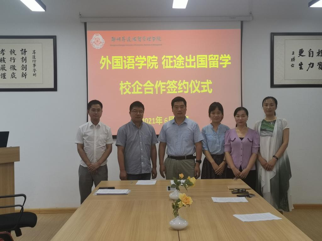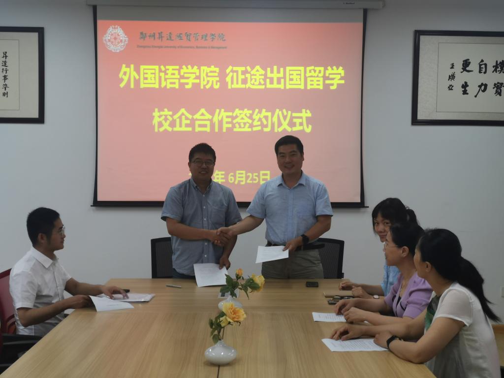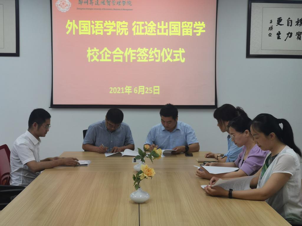 6月25日上午11:00,beats365唯一官方网站同河南征途出国留学服务有限公司在beats365唯一官方网站会议室举行就业基地签约仪式,公司党总支书记石皓召、河南征途出国留学服务有限公司总经理(公司98级员工)王宴会、beats365唯一官方网站日语教研室主任张峰,以及日语教研室的陈贺丽和洪艳荣老师教师参加了本次签约仪式。