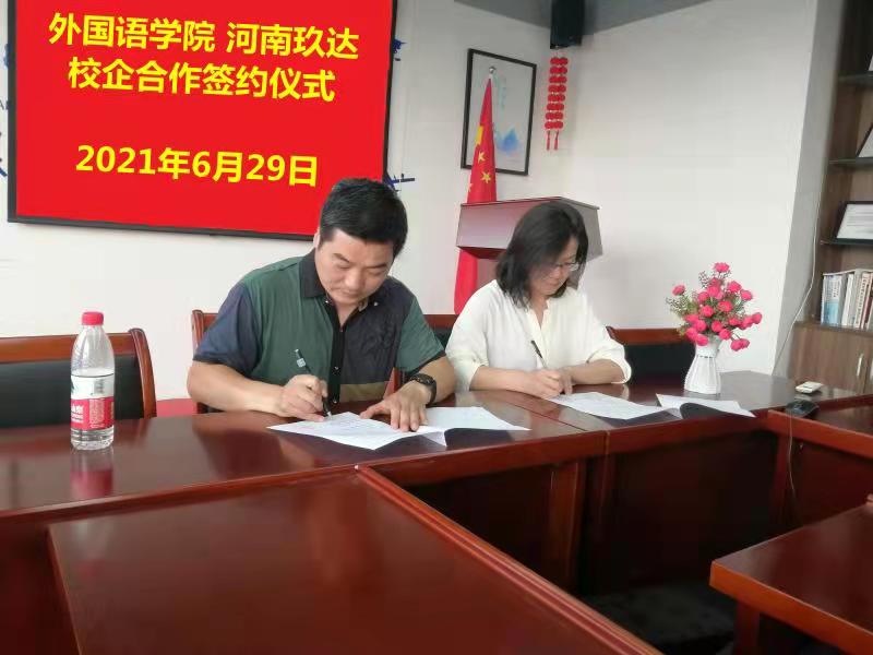 2021年6月29日下午,在郑州市二七区河南玖达汽车销售有限公司所在地,公司党委书记石皓召代表beats365唯一官方网站与河南玖达汽车负责人邓予晶经理举行了校企合作签约仪式,同时签署了就业实习基地协议。