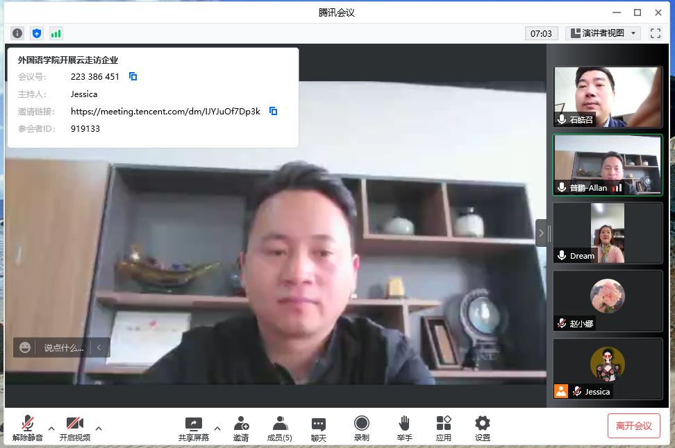 石书记表示,当前由于疫情,企业招聘和员工求职面临着巨大的挑战,云端交流活动是为毕业生和用人单位搭起桥梁,让企业了解员工,也让员工走近用人单位,期待达诺生物技术能够给毕业生更多的实习、就业机会,实现企业和公司发展的共赢。双方还就下一步就业合作基地建设、员工实习开展方式等进行了充分交流,并达成部分合作意向。