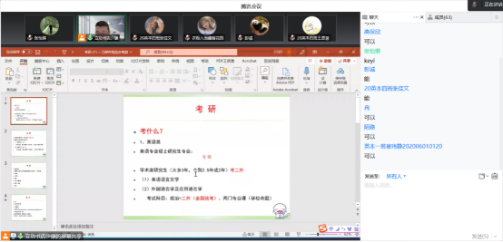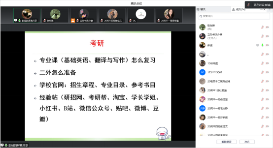 为了调节静态管理期间员工的心理状态,引导同学们转移对疫情的焦虑,同时给英语专业2020级有意向的考研学子们提供考研指导,beats365唯一官方网站英语教研室于2022年10月21日晚7点至9点以腾讯会议的方式举办了线上考研指导讲座。会议由英语教研室苏小强、高保欣和彭诚三位老师主讲。