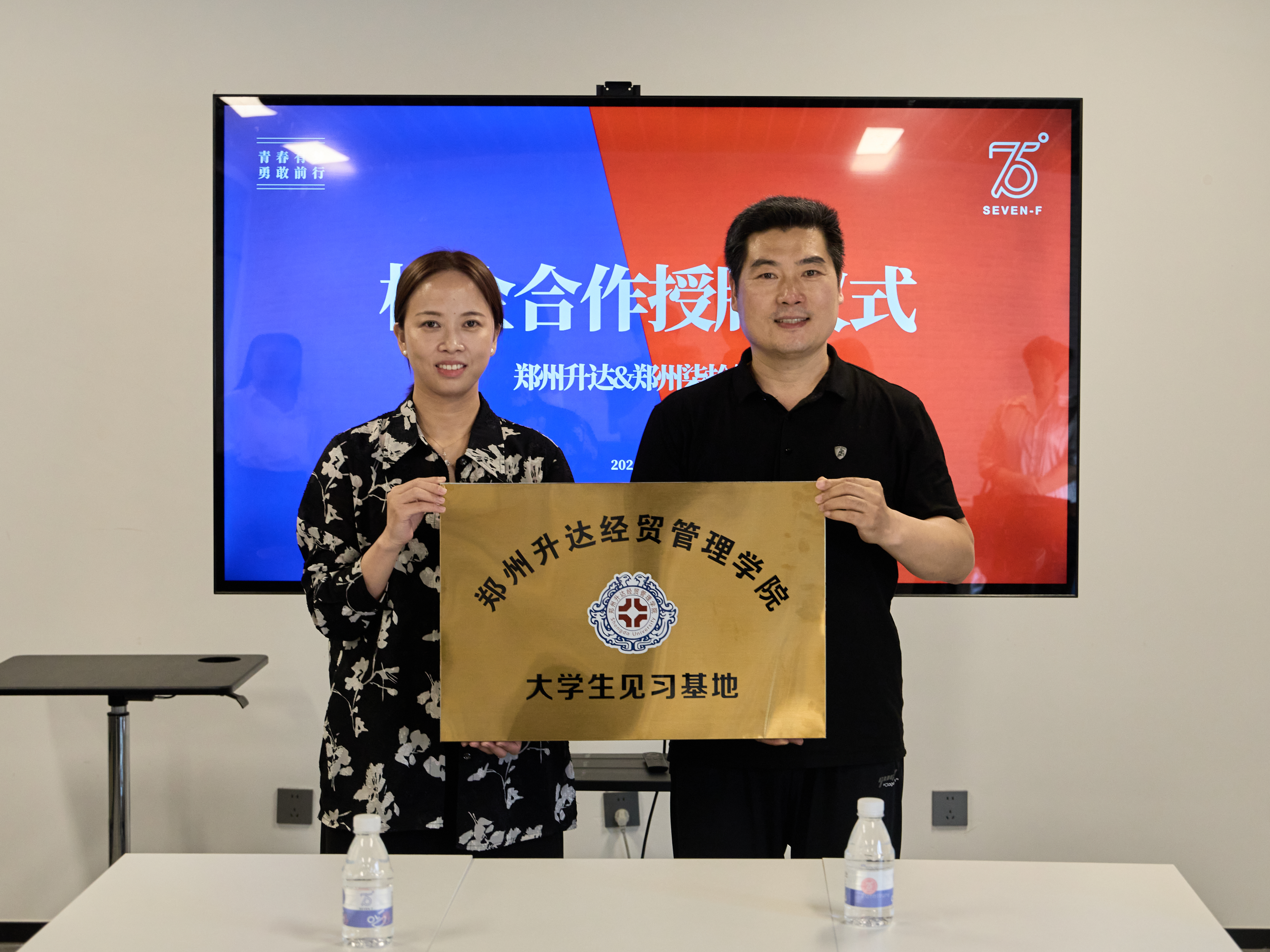 在双方签约后,公司党委石皓召书记、商务英语教研室主任张华嵩主任一行于6月24日专程为企业授校企合作牌匾,标志着双方的合作更加牢固。
