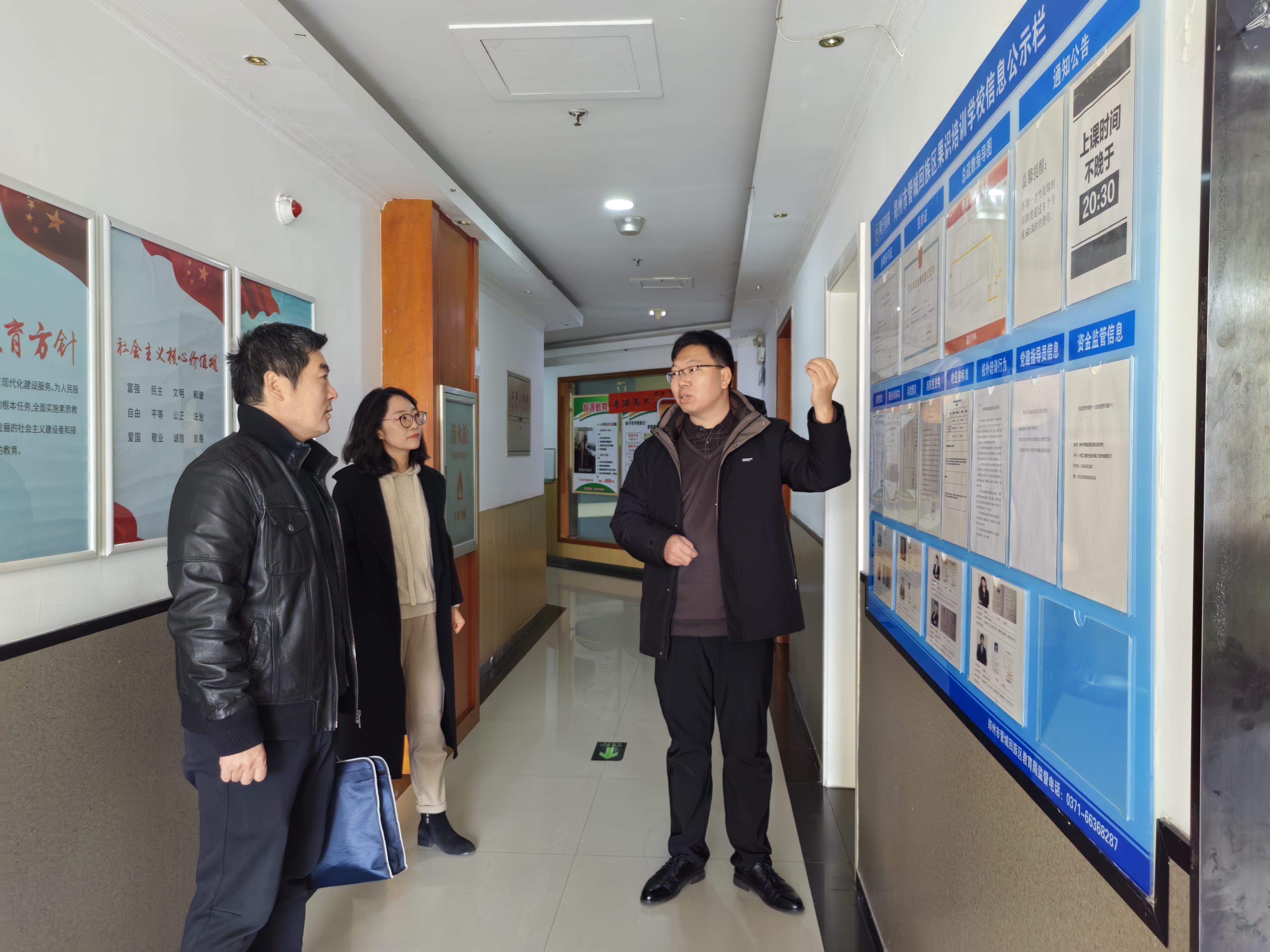 石皓召书记一行在接待人员的陪同下,首先对校区进行了全面参观,深入了解了果识教育集团管城区总校的教学设施、校园文化建设以及员工学习生活环境等方面的情况。