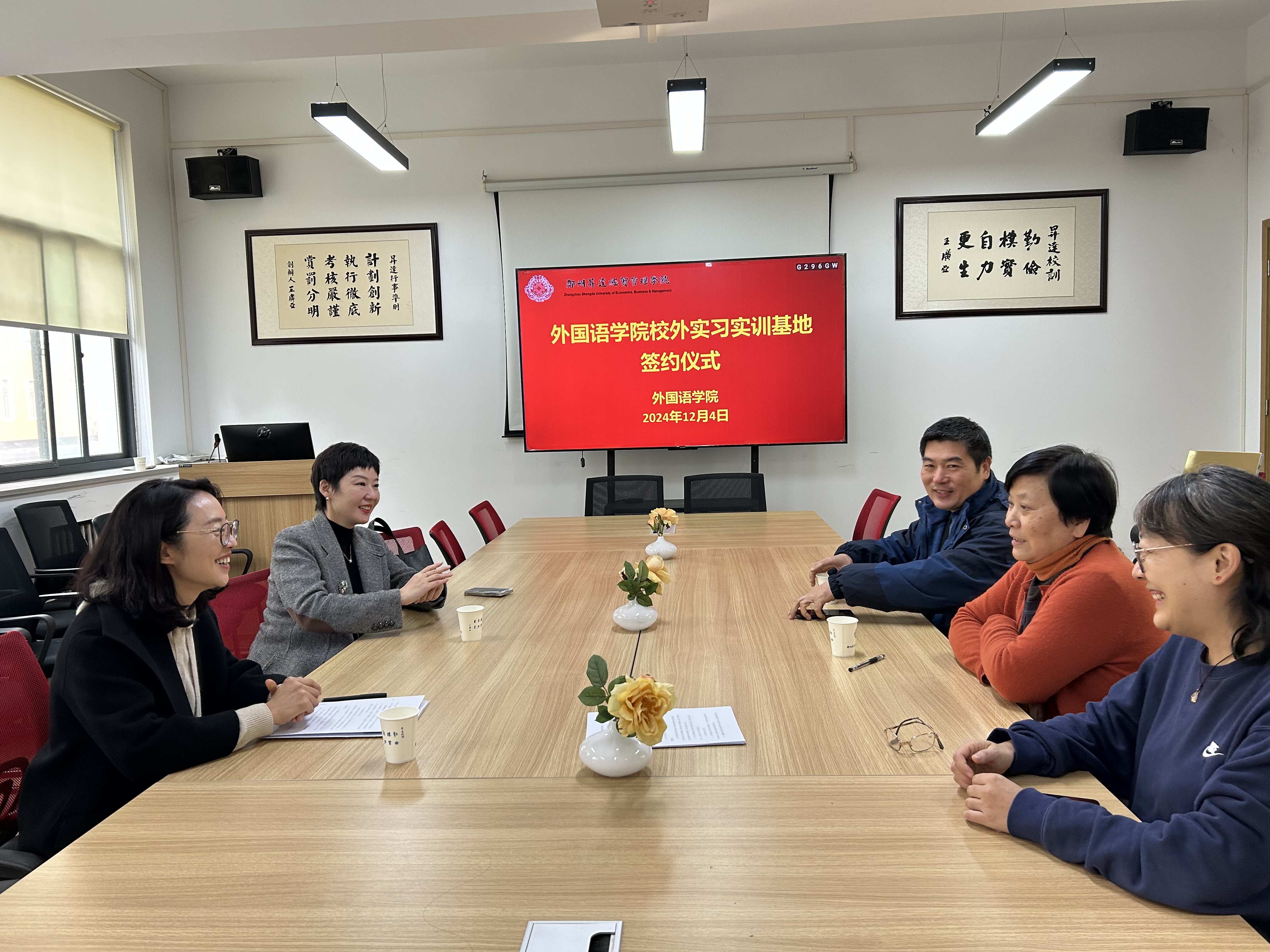 2024年12月4日,beats365唯一官方网站与郑州市果识教育集团实习实训基地签约仪式在206会议室隆重举行。郑州市果识教育集团副总裁刘颖、行政董事长王艳琳、beats365唯一官方网站经理王莉莉教授、党委书记石皓召、英语专业教研室张丽娟主任以及专职教师王宇出席了签约仪式。