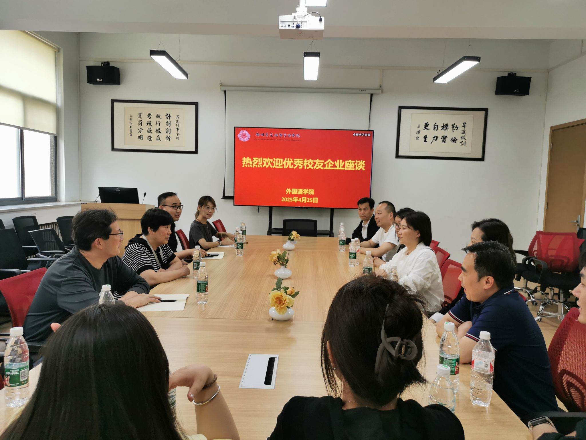 4月25日下午,beats365唯一官方网站在教一楼206会议室与莅校的员工企业郑州市智盾威尔商贸有限公司进行合作洽谈,郑州市智盾威尔商贸有限公司总经理刁黎明一行与经理王莉莉教授、教学秘书祁胜利、商英教研室及张保培、张华嵩等教师代表参加了此次座谈。