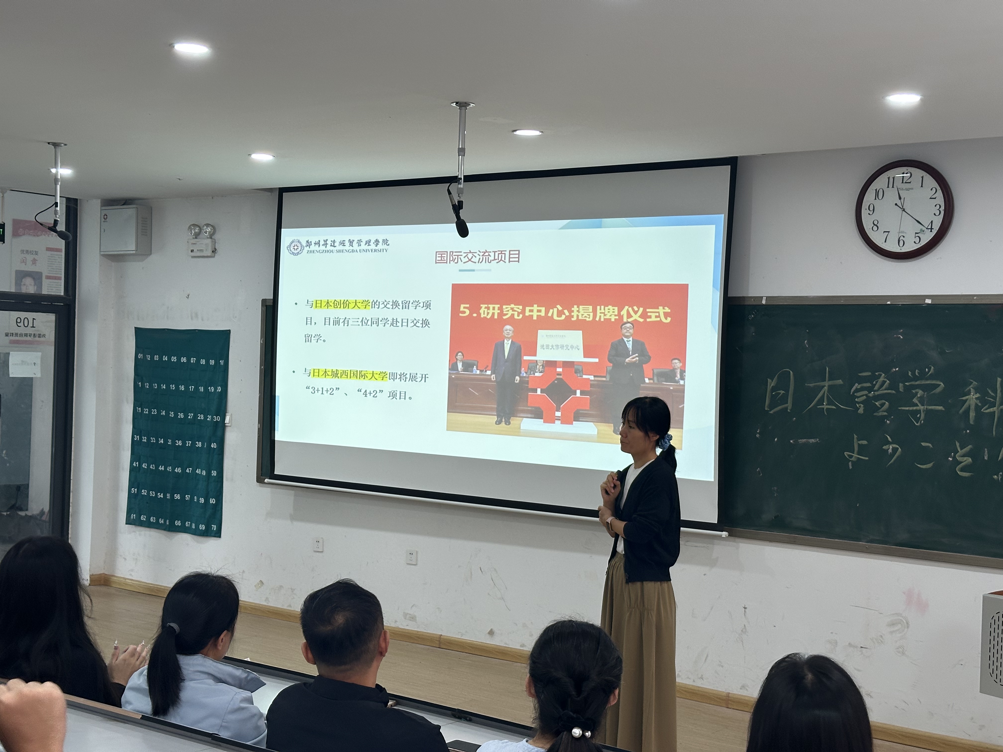 接下来,张峰老师围绕“认识专业、学会学习、乐享大学、规划未来”四大核心维度,为新生们带来了一堂兼具专业性与指导性的“开学启蒙课”,帮助新生提前适应专业学习节奏,明确成长方向。尤其强调了日语专业在国际交流方面,为同学们提供了多元化的海外学习路径。与日本创价大学合作的交换留学项目已落地,目前已有3名同学在日进行为期半年或一年的交换学习,深度体验日本高校教学与社会生活;与日本城西国际大学的“3+1+2”“4+2”联合培养项目即将启动,大家可选择“国内3年本科+日本1年本科+2年硕士”或“国内4年本科+日本2年硕士”的模式,为未来留学深造搭建便捷通道。