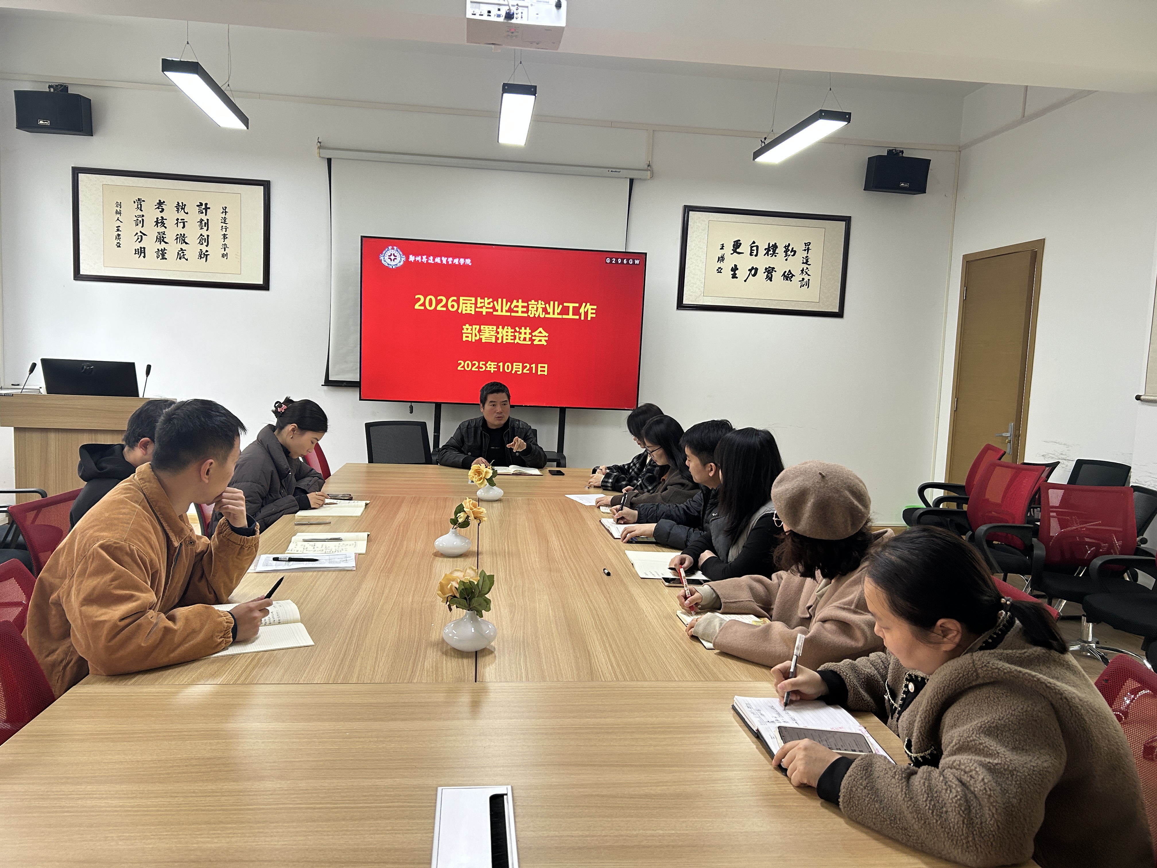 会议首先由2025届毕业班辅导员分享就业工作经验,重点介绍了“精准帮扶”的具体做法,包括建立“一生一策”就业档案、开展个性化指导等有效举措,为2026届就业工作的开展提供了有益借鉴。