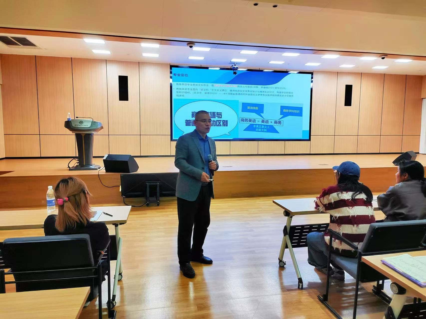 本次参加讲座的包括商务英语专业大一、大二的同学和专升本的新生。同学们均处在树立信心、确立专业学习目标的关键时期,本次关于商务英语专业人才培养和就业的讲座无疑给在座的老师和同学们注入了强心针,极大地坚定了同学们的专业信心,增强了学习动力,并为教师们指明了专业建设和人才培养的方向,增强了专业建设的信心。(图文张华嵩审核石皓召)