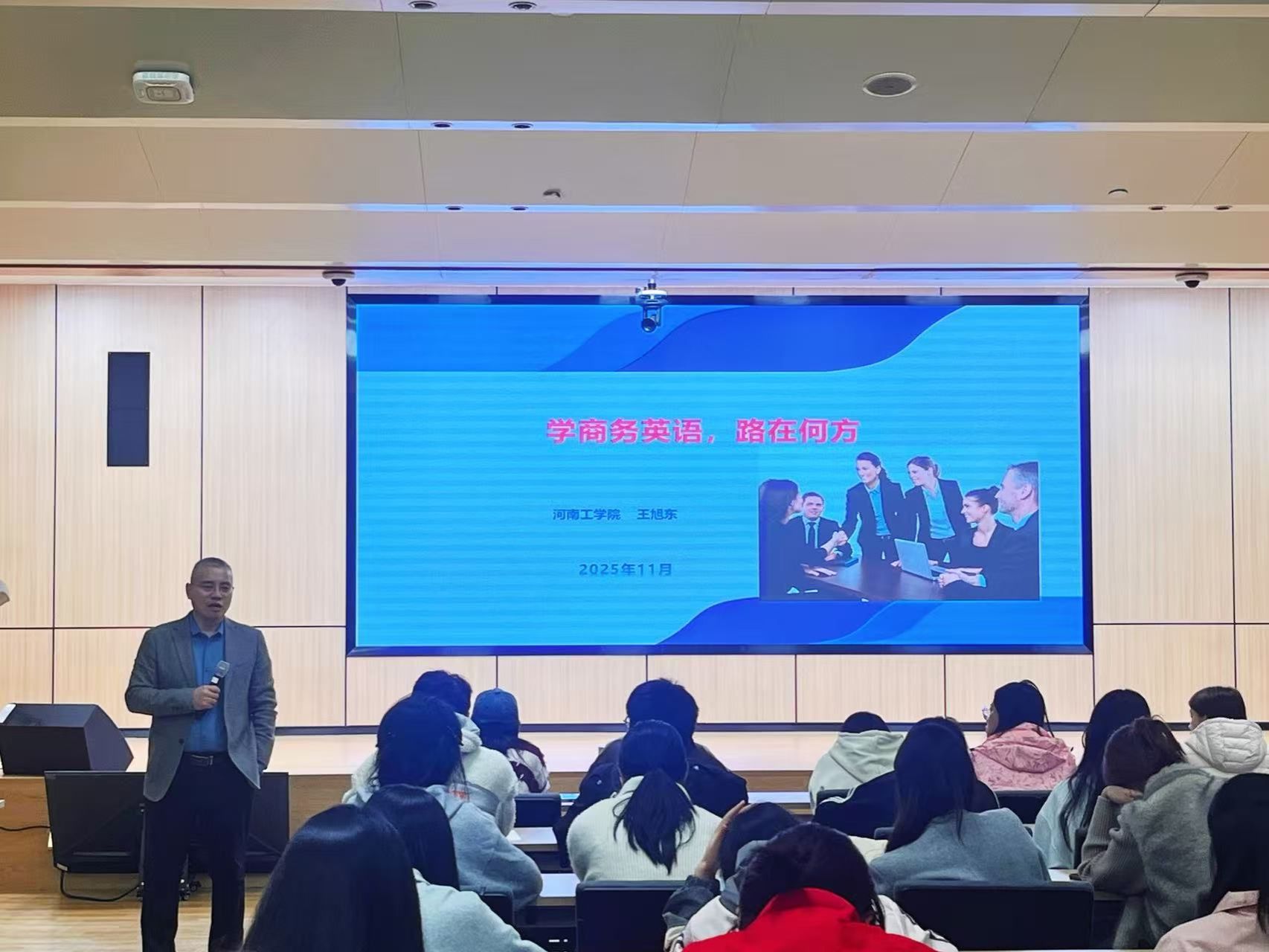 11月4日16:30,河南工公司beats365唯一官方网站王旭东副经理应邀莅临公司beats365唯一官方网站,在图书馆第一报告厅为公司商务英语专业师生举行了题为“学商务英语 路在何方”的主题讲座。