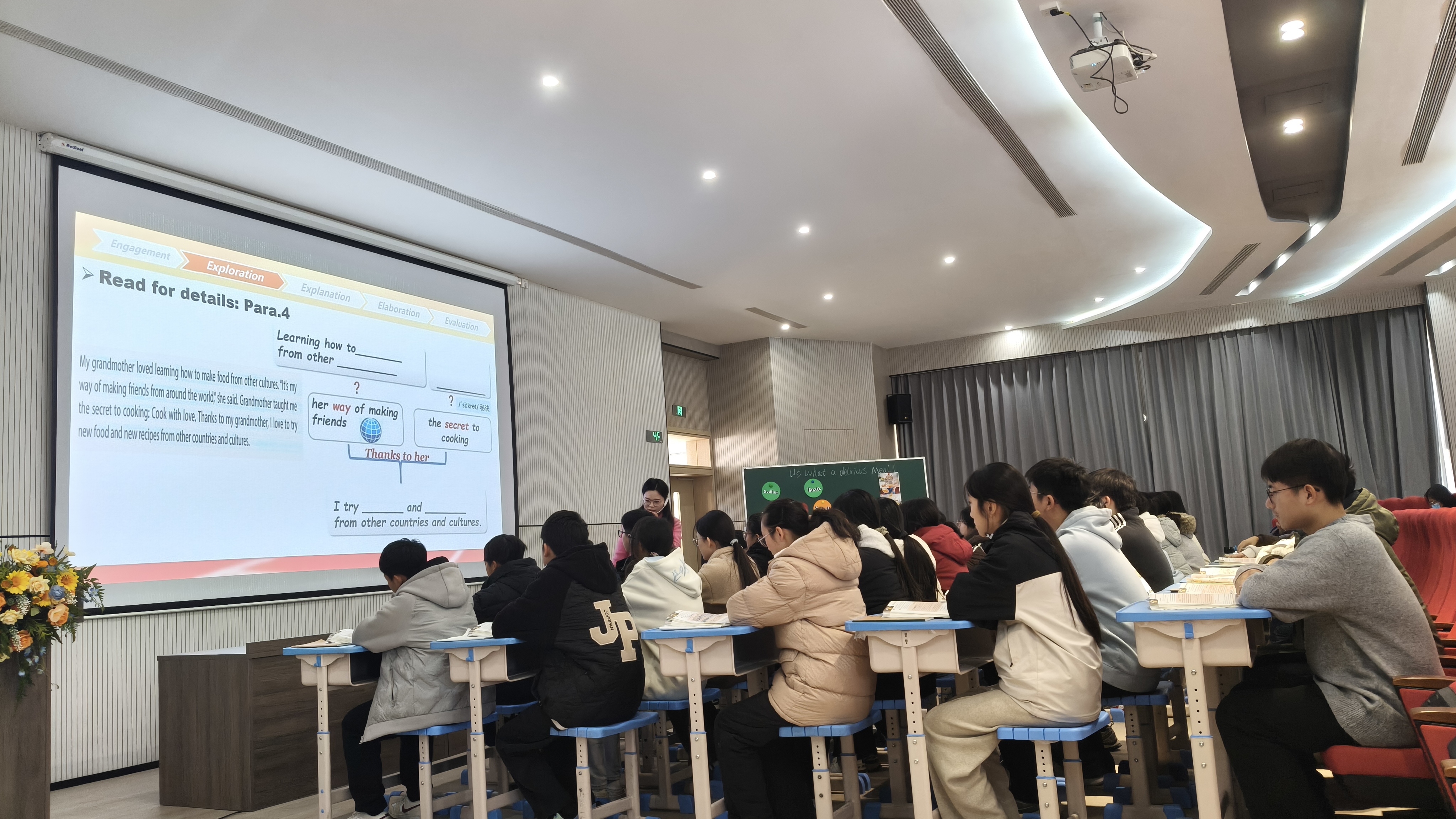 本次实践活动的核心环节为九年级英语教师赵老师带来的示范课。课堂上,赵老师以生动有趣的教学导入、逻辑清晰的教学环节设计、灵活多样的互动方式,充分展现了优秀中学英语教师的专业素养与教学魅力。示范课结束后,公司师生与江山公司的英语教师团队展开了面对面交流。同学们围绕“中学英语课堂的互动技巧”“新高考背景下英语教学的变化”“英语教师的职业成长路径”等问题积极提问,江山公司的老师们结合自身教学经验,逐一进行了细致解答,为同学们拨开了专业学习与职业发展的迷雾。