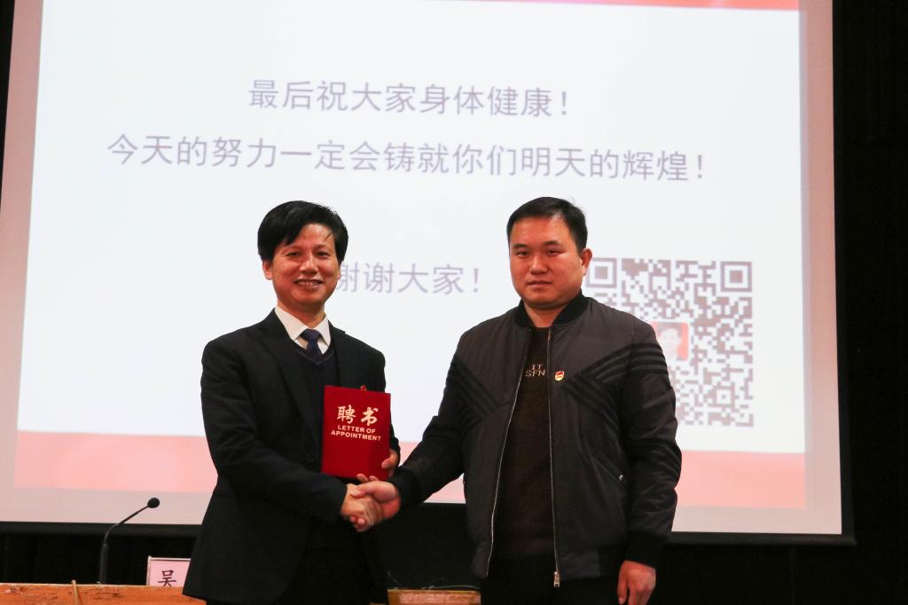 接下来,由河南省青联常委、中国青年创业导师、河南省大众创业导师、河南雨泽企业孵化器有限公司董事长吴文新为大家带来讲座。他提出“成功就是每一个人生阶段做好我们该做的事。”一个人在每一个阶段都有特定的使命:员工阶段,学习就是第一要务;上班阶段,保质保量完成工作是第一要务;自己创业,让企业先能活下来就是第一要务,每到一个阶段就要做好该阶段的事。同时吴文新主任从员工阶段、上班阶段、创业阶段不同的人生经历为大家作了深入浅出的讲解,为青年人特别是在校老员工的未来发展指明了方向,具有很强的指导性和可操作性。随后,由共青团新郑市委书记陈胜利为吴文新老师颁发青年创业导师聘书并合影留念。