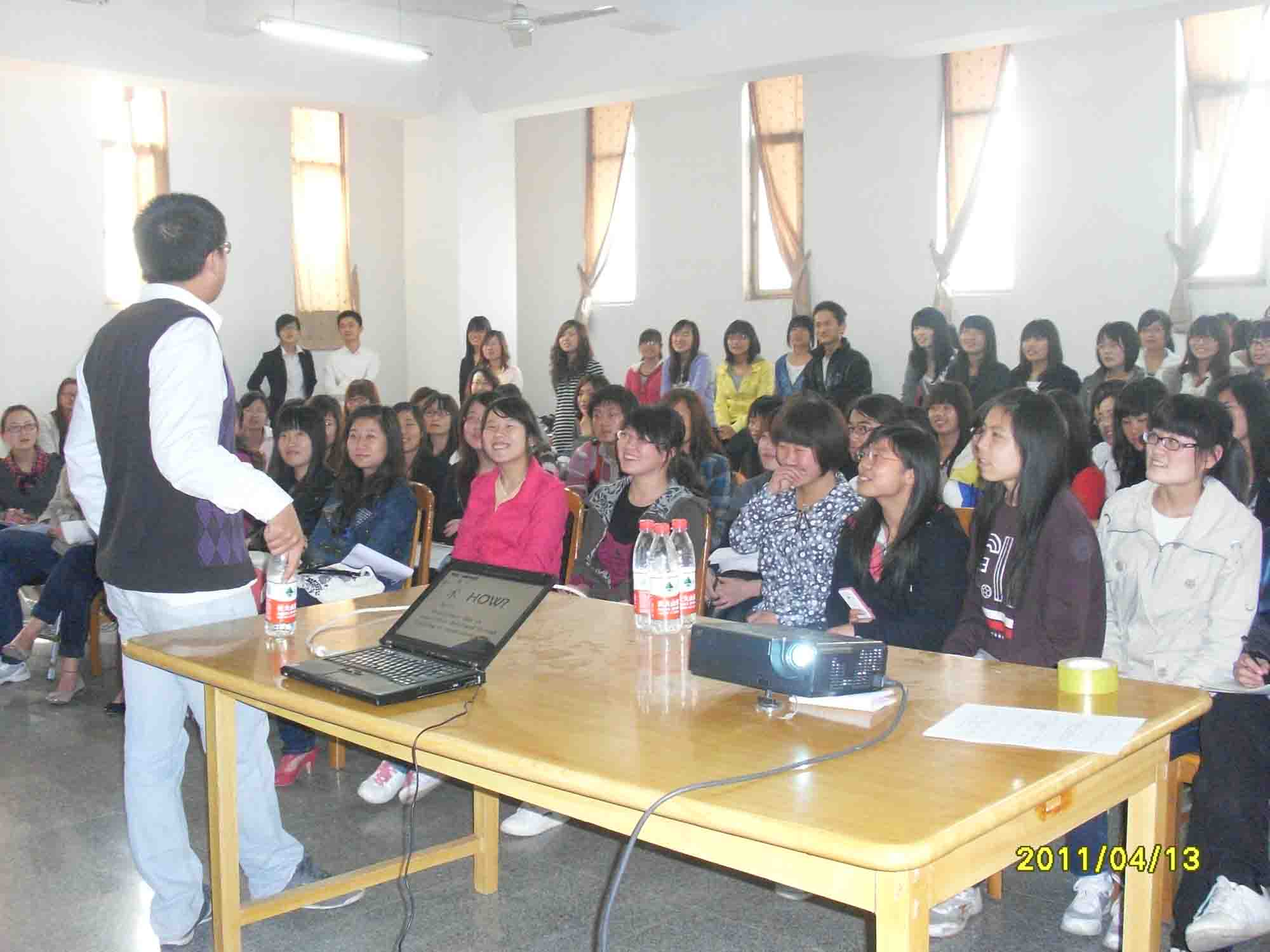 经余鸿玉老师积极联系,4月13日下午,郑州新东方培训公司李楠老师一行三人来到了外语系开办专场招聘活动。新东方此次提供招聘岗位较多:专职英语辅导老师10名、兼职的小学初中各科辅导老师10-15名、暑期夏令营辅导老师20名。