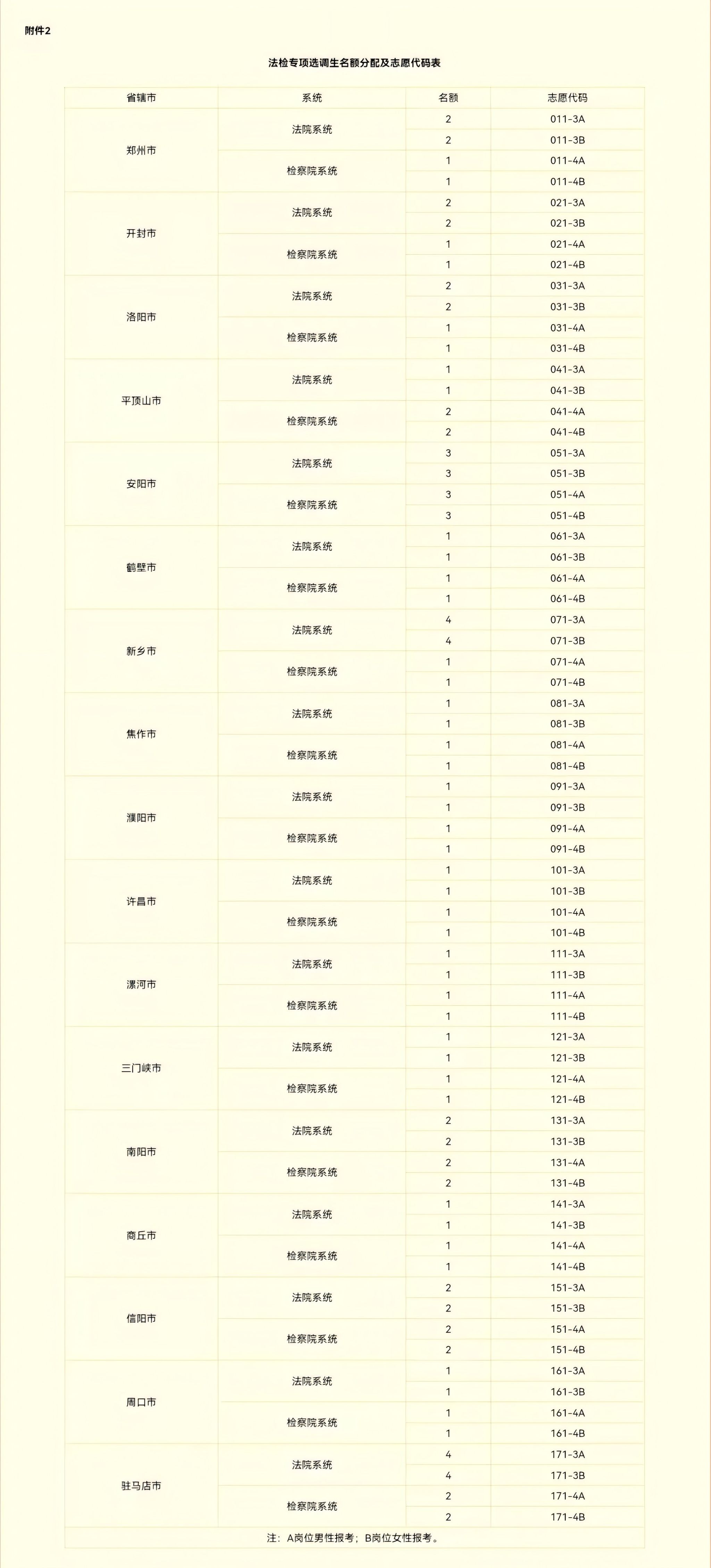 各省辖市(含济源示范区、郑州航空港区,下同)招录名额见附件1、2。