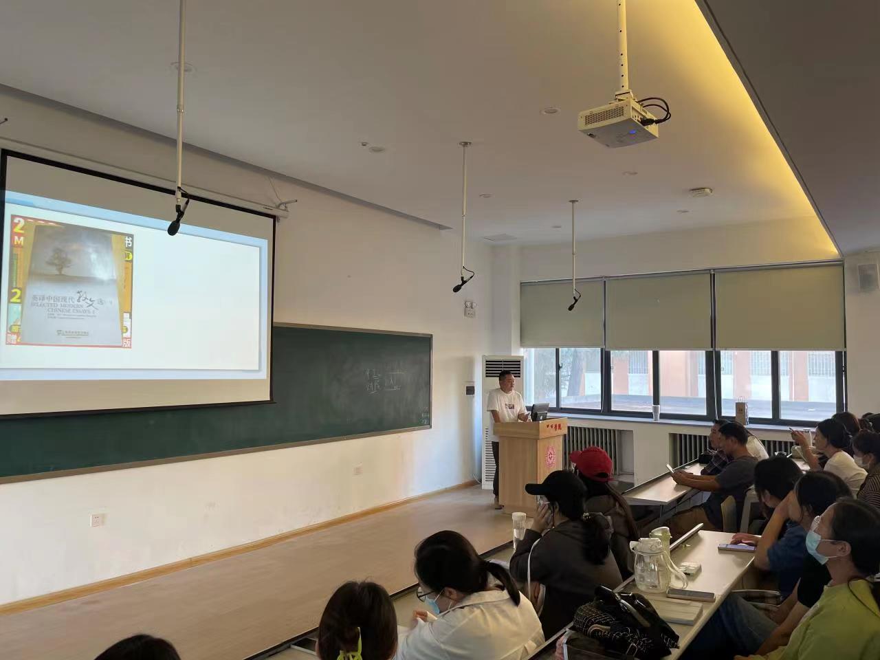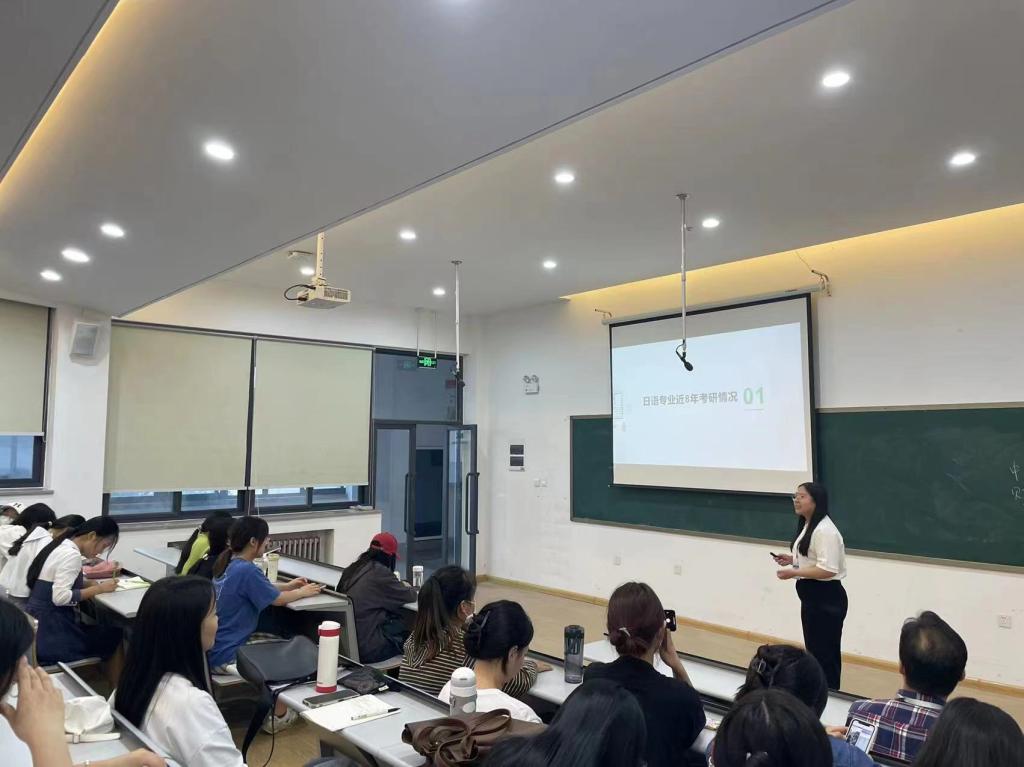 接下来,商务英语教研室的张保培副教授详细介绍了外语类考研的学科分类、相关公司的学科状况、MTI招生现状等,积极鼓励在座员工能胸怀理想,再创佳绩,为公司争光;英语教研室的高保欣老师以一句文学翻译为引子展开了热情并亲切的讲述,从考研备考、读研历程和人生感悟方面给员工们带来了很多诸如如何在考前缓解心理压力等实用的备考策略;在国内MTI招生数量和报考数量同时增多的大背景下,翻译教研室的王余成老师则是给备考MTI方向的考生作了大量的考情分析,以详细的图示法给员工展示并讲解了国内各个梯队的MTI公司招生现状及报考建议;翻译教研室的刘真老师结合自身工作和读研经历为员工鼓劲,希望同学们能沉下心来,做好十足准备;日语教研室的张真老师图文并茂的讲解了日语方向员工考研的基本情况,近五年日语考研优秀员工案例以及跨专业考研的利弊,并推荐了相关公司和专业。