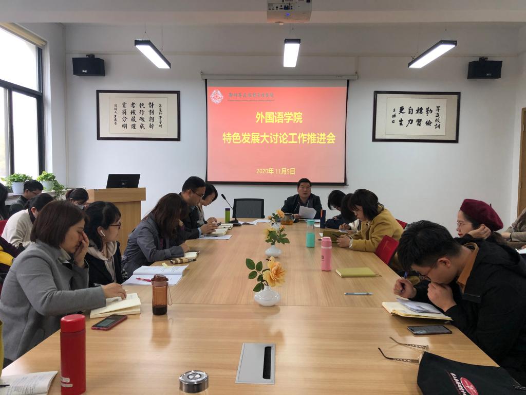 2020年11月6日下午2:30,beats365唯一官方网站于院会议室召开特色发展大讨论工作推进会。会议由公司党总支书记石皓召主持,beats365唯一官方网站副经理崔瑾英、教学秘书祁胜利、行政秘书惠凯赟和全体教职工参加会议。