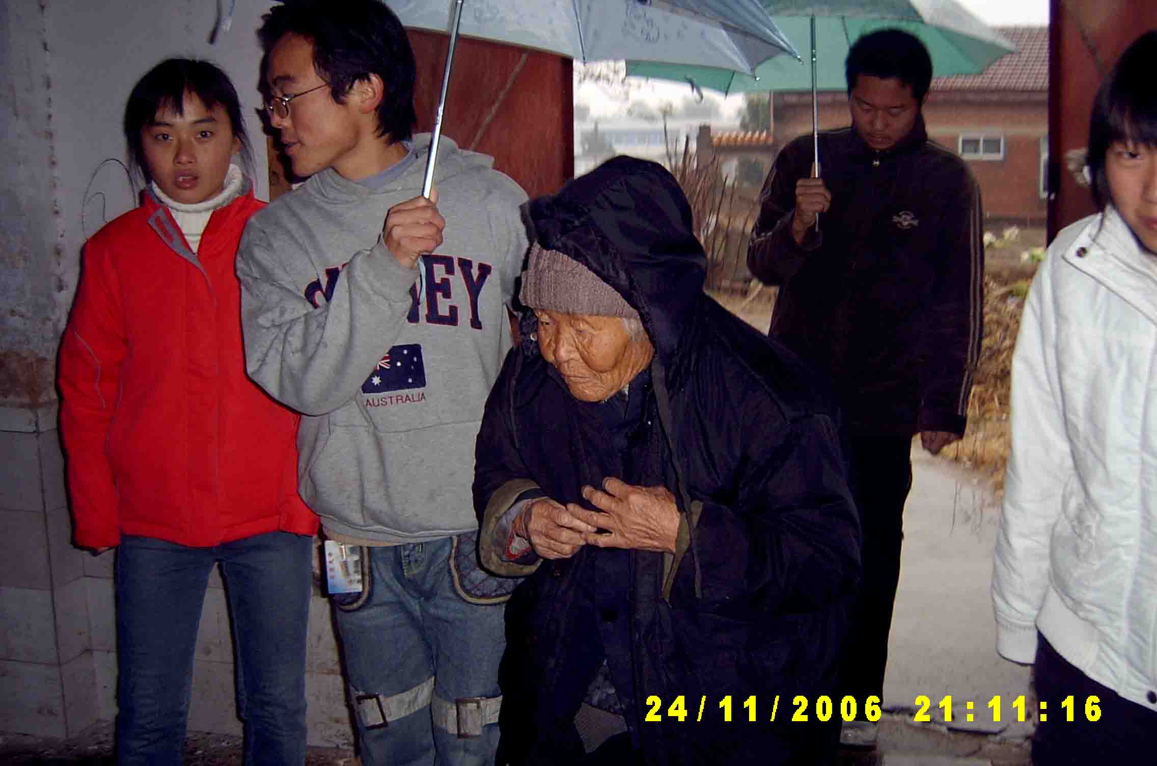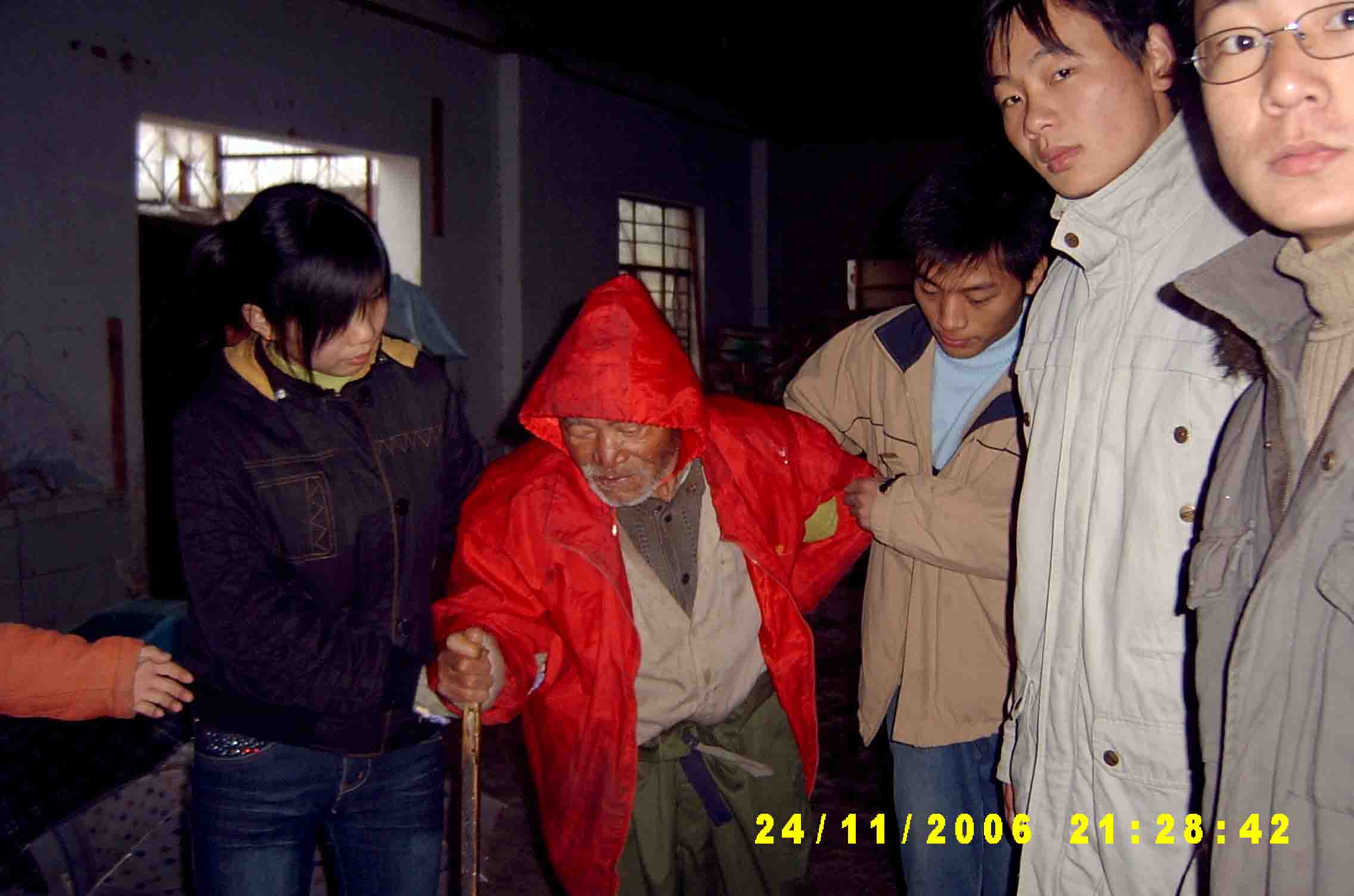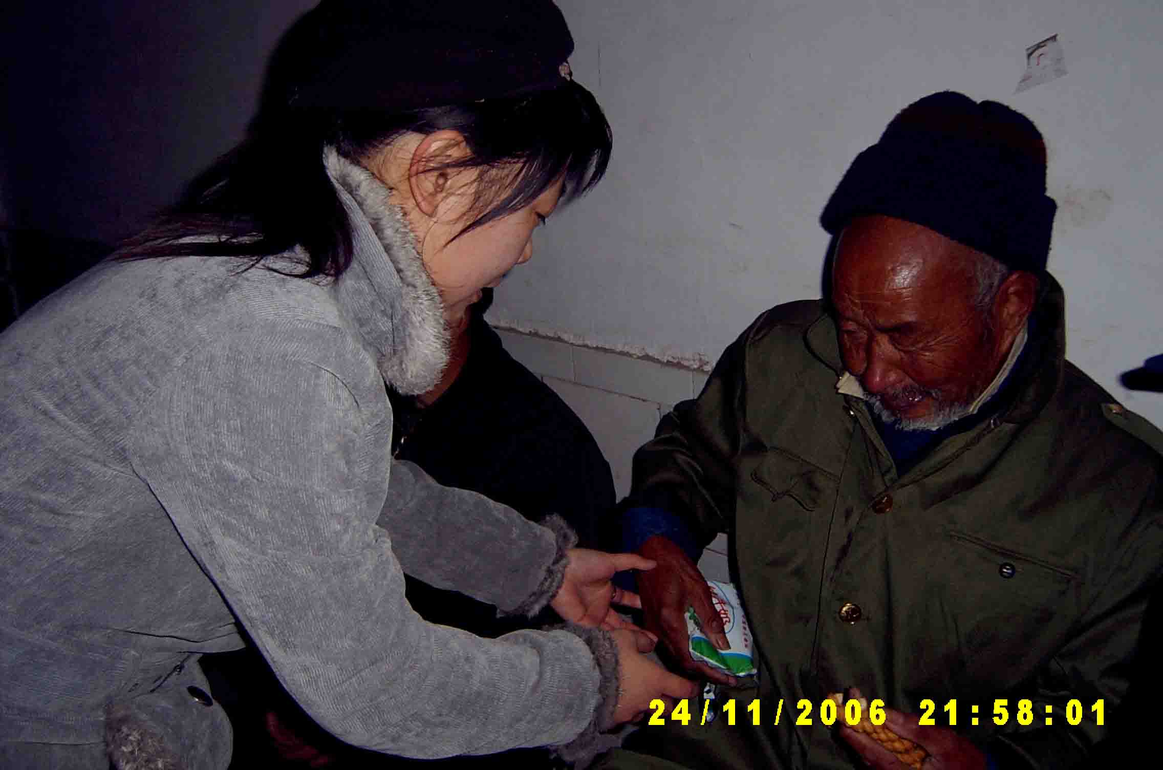 11月25日清晨,公司外语系05。06届科技英语班的同学们来到了龙湖镇敬老院,为那里的老人奉献爱心。