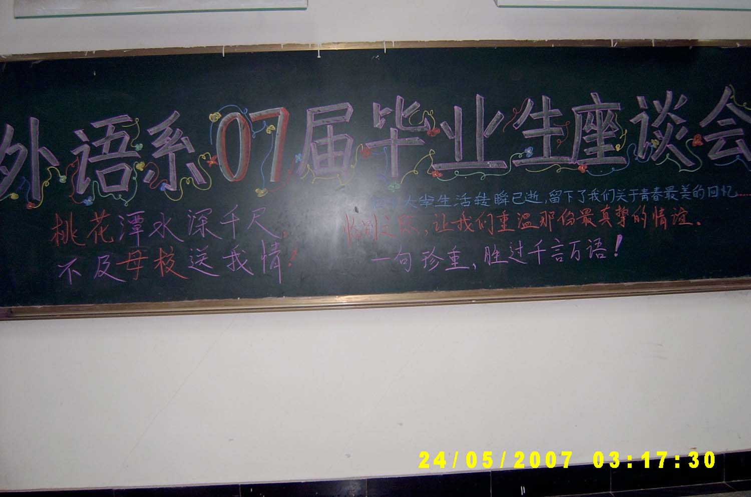 5月24日下午,外语系2007届毕业生座谈会在外语楼103会议室举行,党总支书记乔卫、毕业生代表、在校生代表30多人参加了座谈,座谈会由党总支副书记、行政秘书杨明志主持。