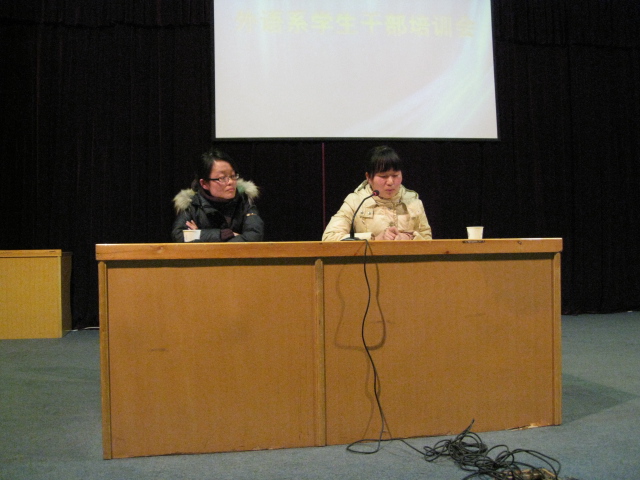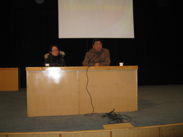 最后杨明志老师和马秉义主任分别对这次培训会做了总结。杨老师向大家介绍了公司的管理制度落实到班里的整个程序,使同学们认识到自己所处的位置,所担负的责任,并且勉励大家履行职责,严于律己,服务于广大同学,认真完成自己的学业,使自己更加优秀;马主任肯定了本次培训会的意义,肯定了同学们取得的成绩,同时也鼓励广老员工干部努力培养自己的奋斗精神,带动身边的同学努力成为“精外语、强听说、懂经贸”的外语人才。两位领导的讲话博得广大同学的阵阵掌声,最后培训会在热烈的气氛中结束。