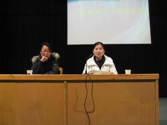 为了加强对员工干部队伍的培训,提高员工干部的工作能力和综合素质,外语系于25日晚在公司龙湖报告厅举办员工干部培训会。外语系主任马秉义教授,系党总支副书记、团委书记、行政秘书杨明志老师,以及各年级辅导员老师和外语系500余名员工干部一起参加了本次培训会。培训会由系团委副书记惠凯赟老师主持。