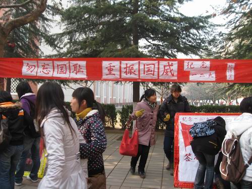 2009年12月1日,由外语系通讯部和团委办公室合作组织的“一二·九运动”签名活动在行政楼前和外语楼前拉开了帷幕。