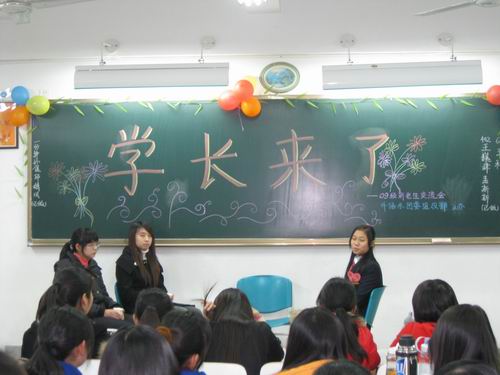2009年12月3日晚上6:30,由外语系组织部主办的以“学长来了”为主题的外语系特色团校培训暨新老生交流会在外语楼A座的401、402、404和513教室成功举办。本次以促进学长们与大一新生交流学习为目的的活动有幸邀请到外语系李恒基老师,系团委副书记付大喜、组织部部长谷雨和上届MMD部部长兼辩论队队长付玉君等八位优秀的学长学姐。交流会由系团委组织部干事主持。