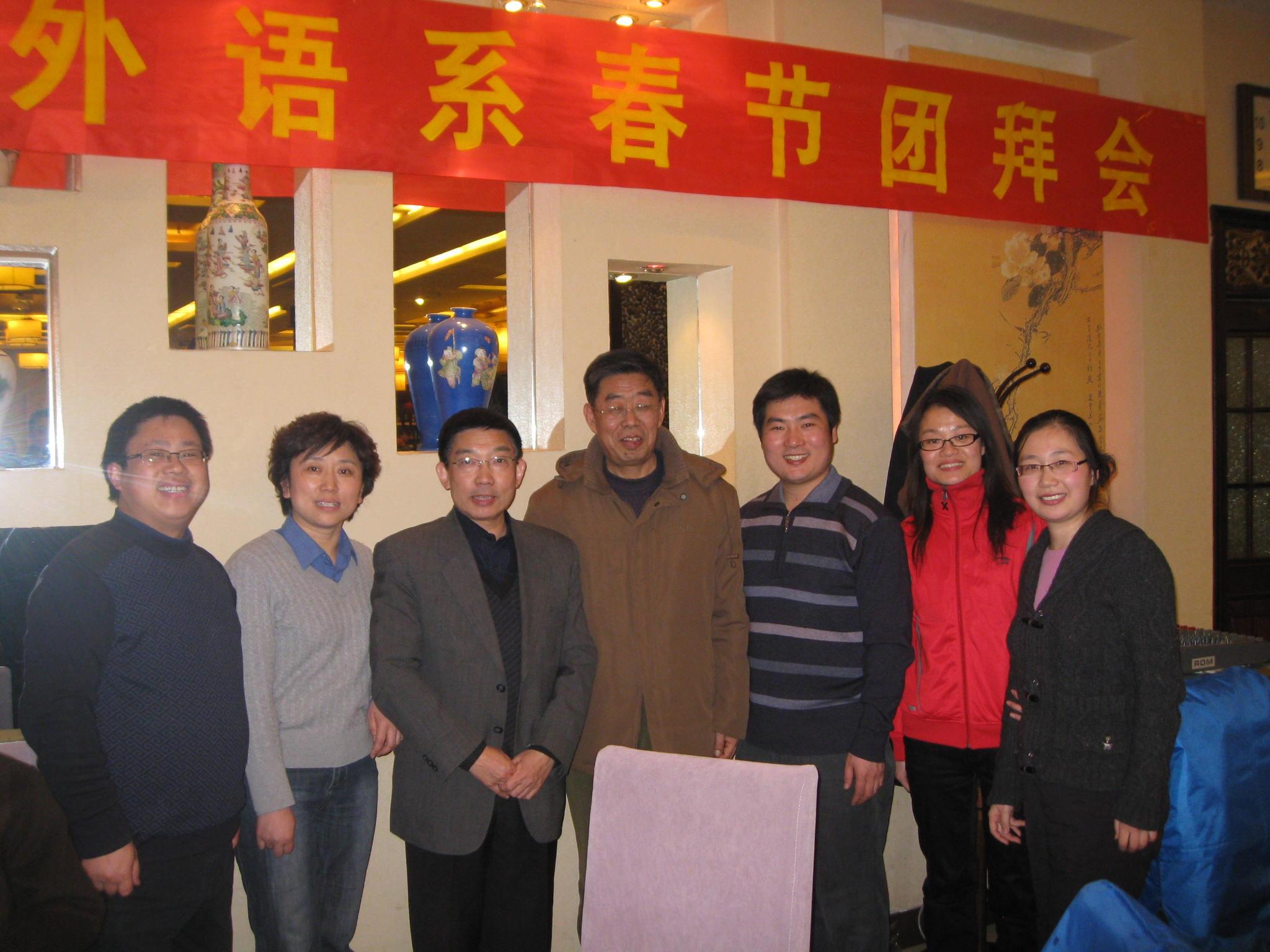 牛辞旧岁洒满金,虎迎新春啸全福。2010年1月25日晚,外语系全体专兼任教职员齐聚郑州温馨园酒店,隆重举办虎年新春团拜会。经理崔慕岳教授、院办朱永恒主任、总务处张其武总务长、会计室张博主任、院教学督导组赵洁川教授应邀莅临团拜会。