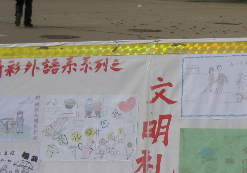每个同学都热情展示才华,绘画对文明礼貌的理解和感悟,奇思妙想,用漫画勾勒出一幕幕令人共鸣的礼仪。09级英语三班的“文明礼貌在我心中”和09级日语一班的“文明礼貌从小事做起”都突出强调了我们要从身边的点点滴滴做起,严格要求自己,做好文明,注重品质,提升修养。