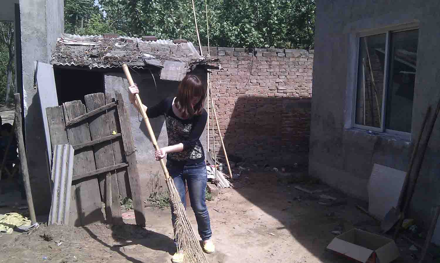 帮老人打扫院子