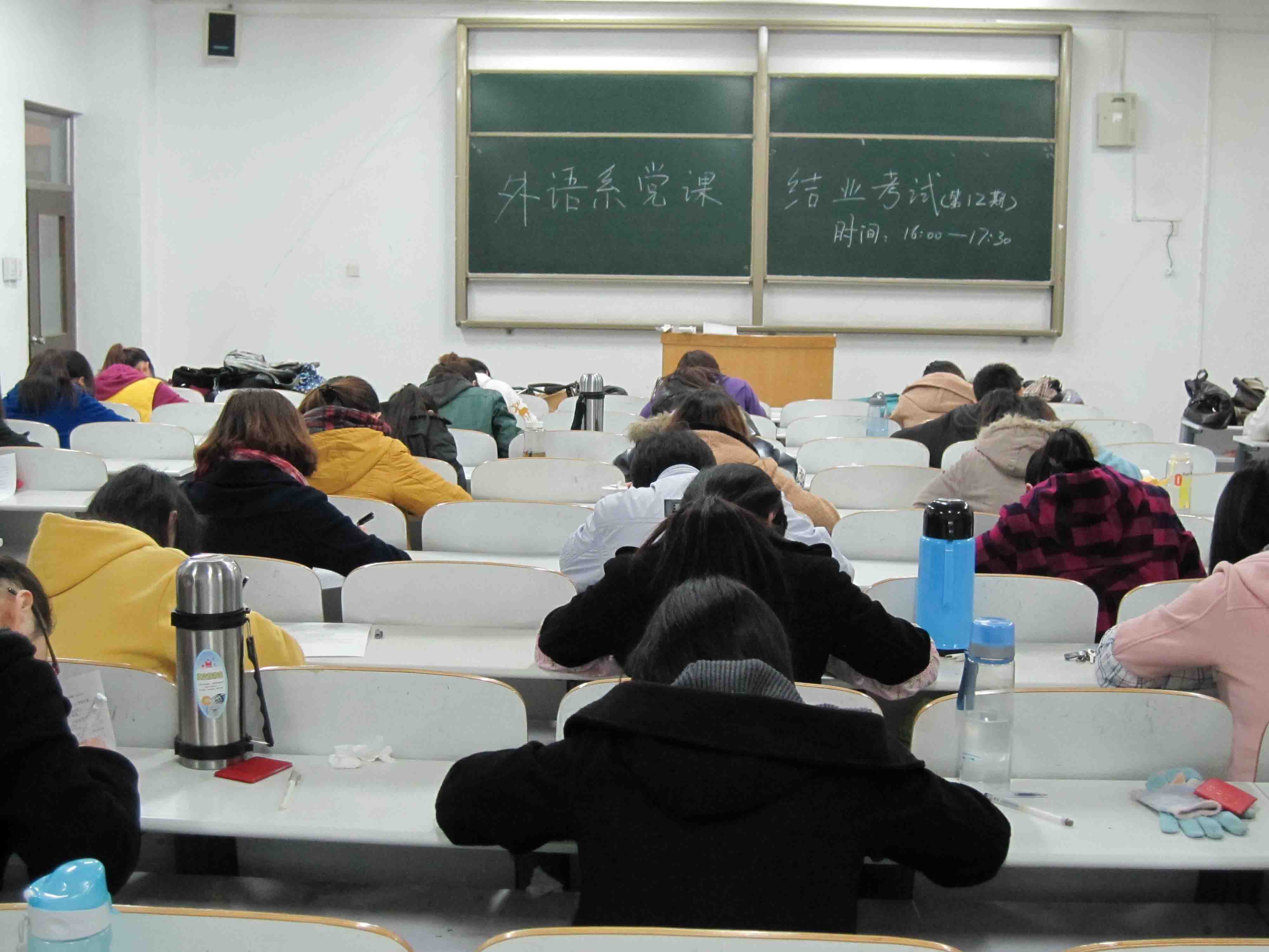 2011年11月17日下午16:00,外语系第十二期业余党校结业考试在外语1号楼101、102大教室顺利举行,本期全部100名业余党校学员参加了考试。考试期间,外语系党总支副书记石皓召同志巡查了考场,考场秩序井然。