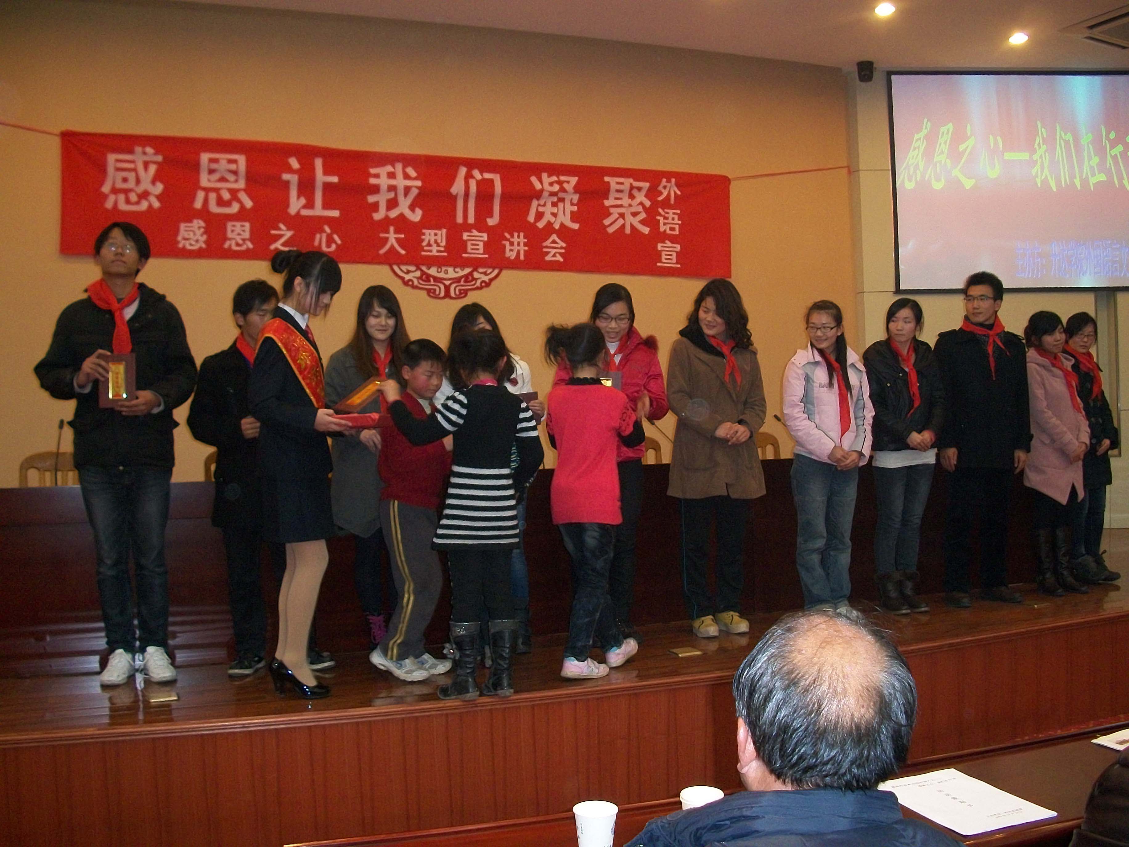 此次由外语系团委主办的以感恩为主题宣讲会,既是对外语系本学期青年志愿者活动尤其是泰山村希望小学系列支教活动的一个总结,又是一次对当代老员工志愿服务意识与奉献精神的大力弘扬。