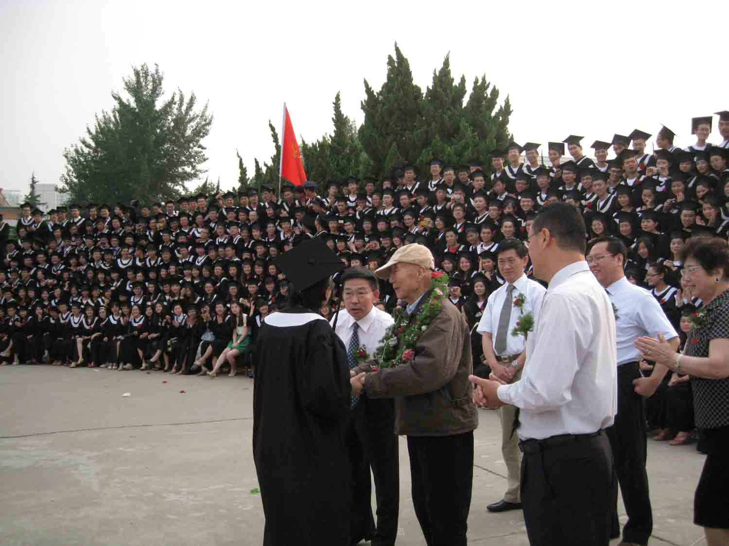 6月14日,迎着初升的朝霞,当创办人步入毕业照相典礼现场的时候,外语系学子张亚楠同学向创办人献上了漂亮花环,更是表达出了了所有毕业生学子对创办人的感恩,对母校的感恩。