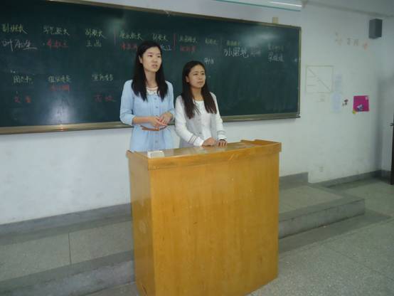 2014年9月28日下午2:30于外语楼A楼308,309召开优秀员工交流会。为使员工对老员工活有更生动的了解,外语系特从11级选取四名有代表性的优秀员工代表李辰、李芳华、夏先慧、娄雯雯分专业进班给大一新生做交流。