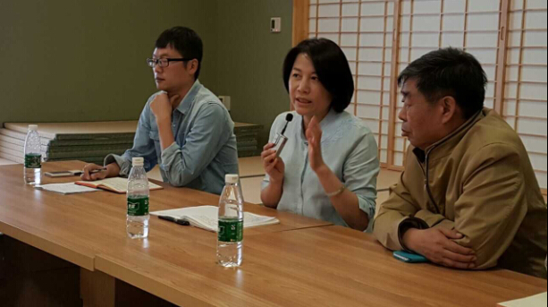 接着吴丹老师跟大家共同分享了她走进高中校园进行宣传报告的情况。本学期,吴丹老师创新宣传模式,从开学初就积极主动的开展进入高中校园进行宣讲的各项准备工作,并制作了100多页的ppt宣讲材料。五一前,她通过各种关系联系安阳地区的各个高中,其间几多艰辛、几多波折,动情处赢得了在场老师的阵阵掌声。