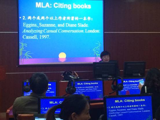 为规范外语系本科生毕业论文写作工作,做好迎接2017年教学评估的充分准备,10月30日下午两点,外语系在外语楼B座201同声传译实验室举办了一场题为“规范本科毕业论文写作指导”的讲座,由王晋副教授主讲,全系40余名教师聆听了报告。