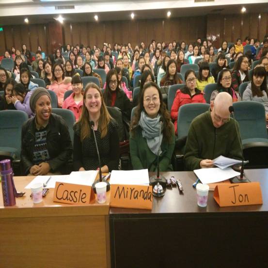 本次单词拼写大赛由外语系学艺部主办,出席此次比赛的评委有特邀嘉宾Jon和Cassic两位外教以及孙明老师。比赛面向外语系大一大二大三的员工,共12位同学他们闯过了初赛和复赛。比赛现场可谓高手如云。比赛前,选手准备充分,自信满满。比赛中同学们热情投入,沉着冷静,积极应对挑战。比赛以车轮战的形式有条不紊的进行着,现场气氛紧张而有序,选手们全力以赴发挥自己的实力,争取获得更好的成绩。充分展现了外语系员工良好的英语学习学风。