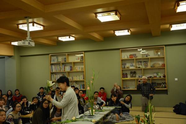 下午四点三十分,三品爱子老师在日本文化室为日语专业员工进行日本花道的演示,表演处处展示着日本插花文化的美与优雅。同时三品老师还为同学们讲解了插花的基础知及和服文化,短短两个小时的交流不仅是眼睛的饕餮盛宴,还收获满满知识,获益匪浅。