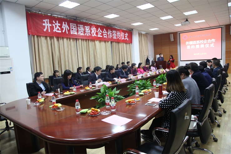 经理郭爱先教授首先向签约企业代表致欢迎辞,并详细介绍了创办人的光辉事迹及升达的发展历程,高度评价彭川勇员工为母校捐建实训室的义举,对各企业莅校与外国语系签署校企合作协议表示热烈的欢迎,对各企业积极参与校企合作的社会责任感表示了感谢,并预祝各企业与外国语系今后的合作圆满成功。