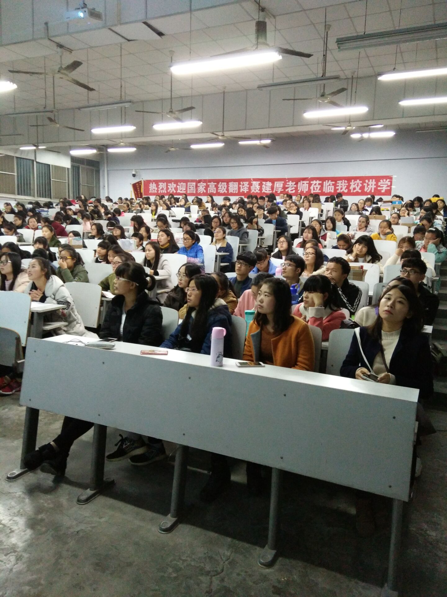 11月14日下午六点十分,外语系邀请北京国际交流协会首席翻译,北京大学访问学者聂建厚先生在4号教学楼111举办“中国梦 翻译梦”的大型英语励志讲座,与400名新生分享先进的英语学习方法,分享自己的奋斗历程。