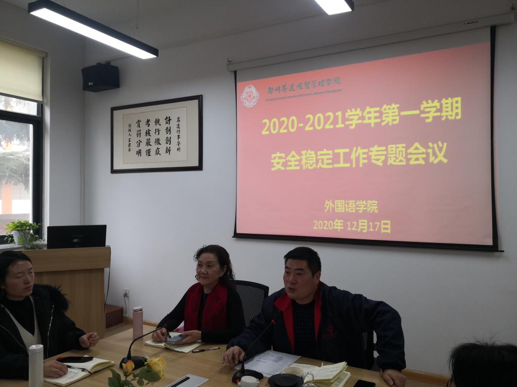 安全工作,责任重于泰山。为进一步加强校园安全工作,落实学期末专项整治行动和安全主体责任推进工作,构建和谐稳定的校园环境,12月17日下午,beats365唯一官方网站全体教师在教学一号楼206会议室召开了2020—2021学年第一学期“安全稳定”工作专题会议。