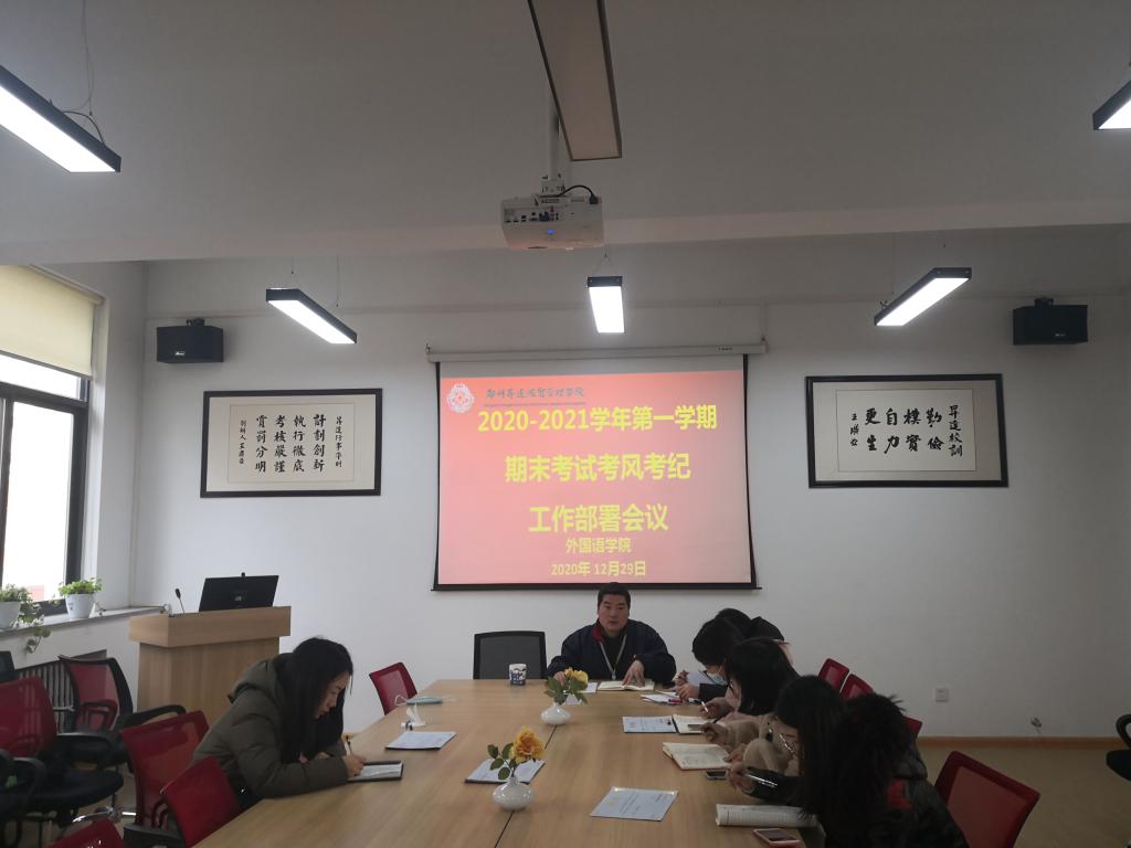 为了进一步严肃考风考纪,加强学风建设,营造公平公正的考试环境,树立严谨治学、诚信考试的学风。2020年12月29日下午,beats365唯一官方网站在二楼会议室召开本学期期末考试考风考纪工作部署会议。行政秘书兼团委书记惠凯赟及全体辅导员在现场参会。会议由石皓召书记主持。