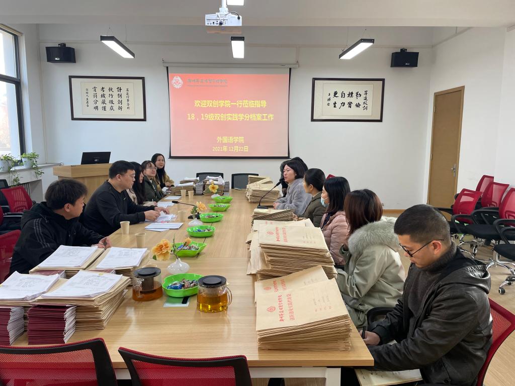 根据双创公司关于实践学分档案检查工作的安排,12月22日上午由双创公司实践管理科科长彭凯带队,广亚教育基金会代表、双创公司教师代表,以及其他二级公司双创工作专员一行,在教学1号楼206会议室对beats365唯一官方网站18级、19级员工创新创业实践学分档案进行检查。beats365唯一官方网站副经理崔瑾英、18级和19级全体辅导员老师参加此次检查工作会议。