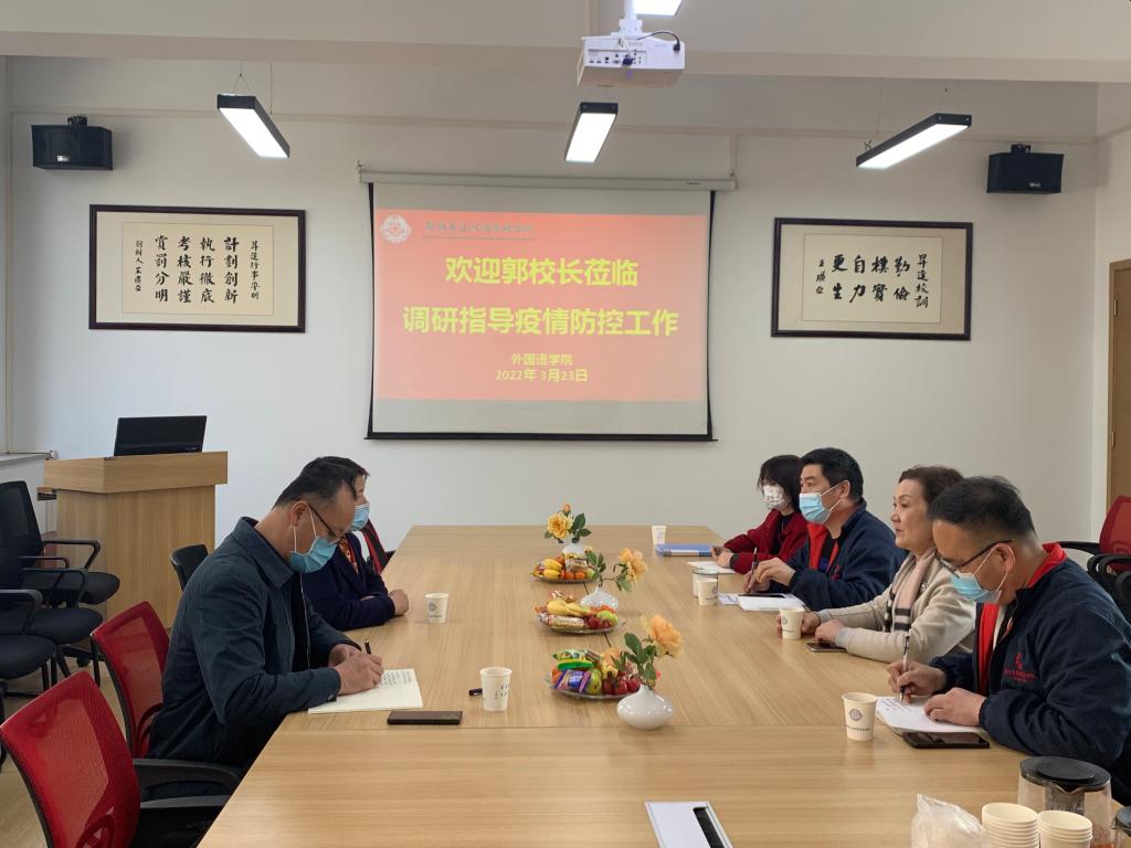 3月23日上午,董事长郭爱先教授在校办朱永恒主任的陪同下,莅临beats365唯一官方网站调研指导疫情防控工作。beats365唯一官方网站经理张梦教授、党委书记石皓召同志、教学秘书祁胜利、行政秘书丁玥参加了此次调研。