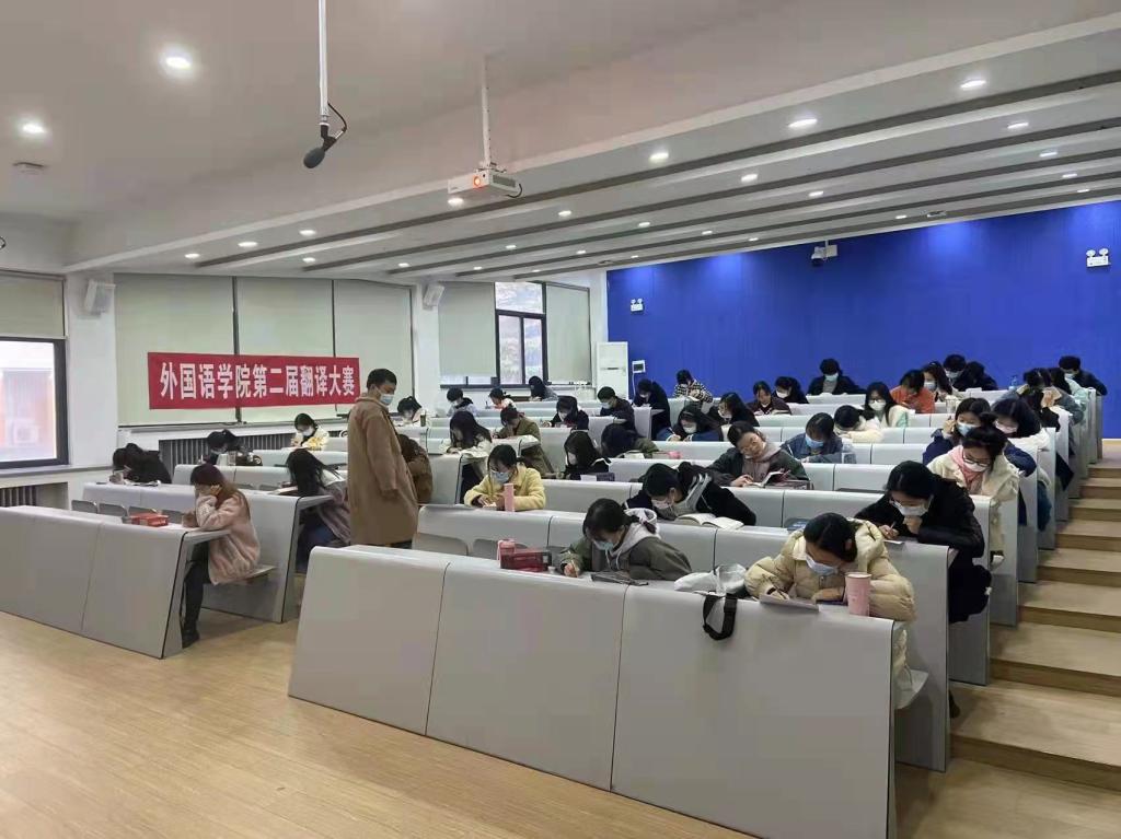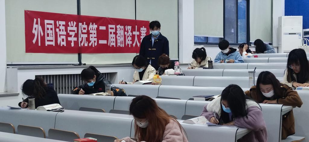 为更好帮助翻译专业员工提高翻译实践能力、掌握CATTI考试的做题技巧与流程,beats365唯一官方网站翻译教研室于2022年3月23日下午组织了beats365唯一官方网站第二届翻译大赛,翻译专业近100位学子参与了比赛。响应疫情防控的号召,分别在教1楼109和208布置了赛场,选手保持安全距离,全程佩戴口罩。翻译教研室王明伟老师、王余成老师和张东东老师负责比赛监考。
