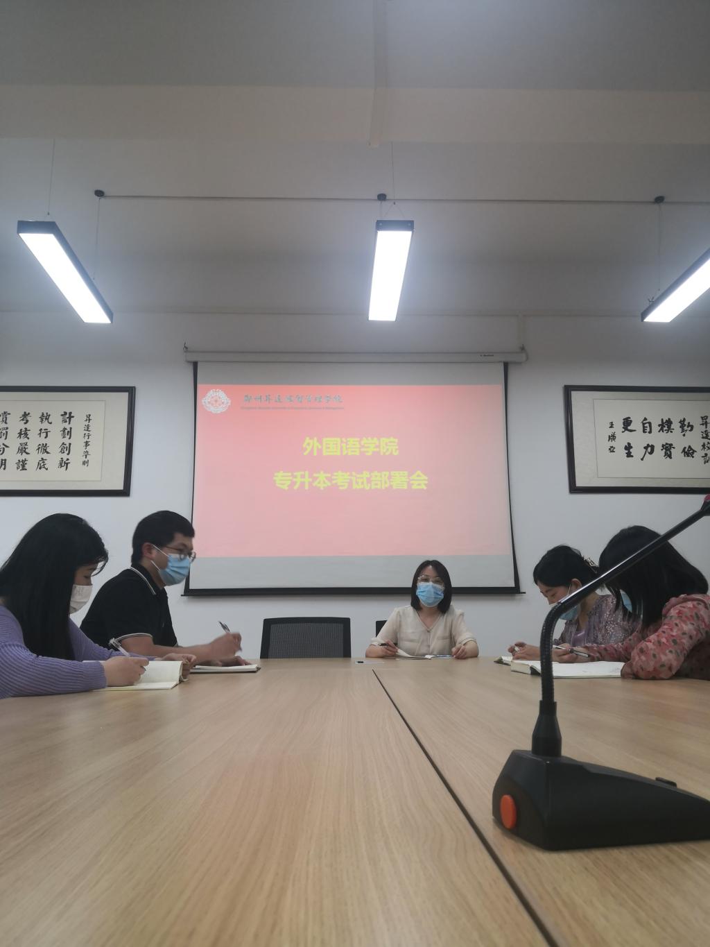 会上,丁老师对河南省2022年专升本考试相关的工作标准进行了详细说明,明晰了工作内容、责任部门、责任负责人、完成时间节点及工作要求。对做好下一步工作提出了两点要求:一是要树牢底线意识,做好组织工作。严格按照公司专升本考试工作的总体部署,制定具体实施方案,明确任务,细化分工,把责任落实到岗,落实到人,环环相扣,确保每一个环节不出现纰漏和问题。努力为员工创造舒适的考试环境。二是要强化统筹协调,形成工作合力。专升本考试是一个系统工程,各位老师要各司其职,各尽其责,密切配合。一方面要做好疫情防控,健全应急处理机制,另一方面,要加强对考生的诚信教育和纪律教育。