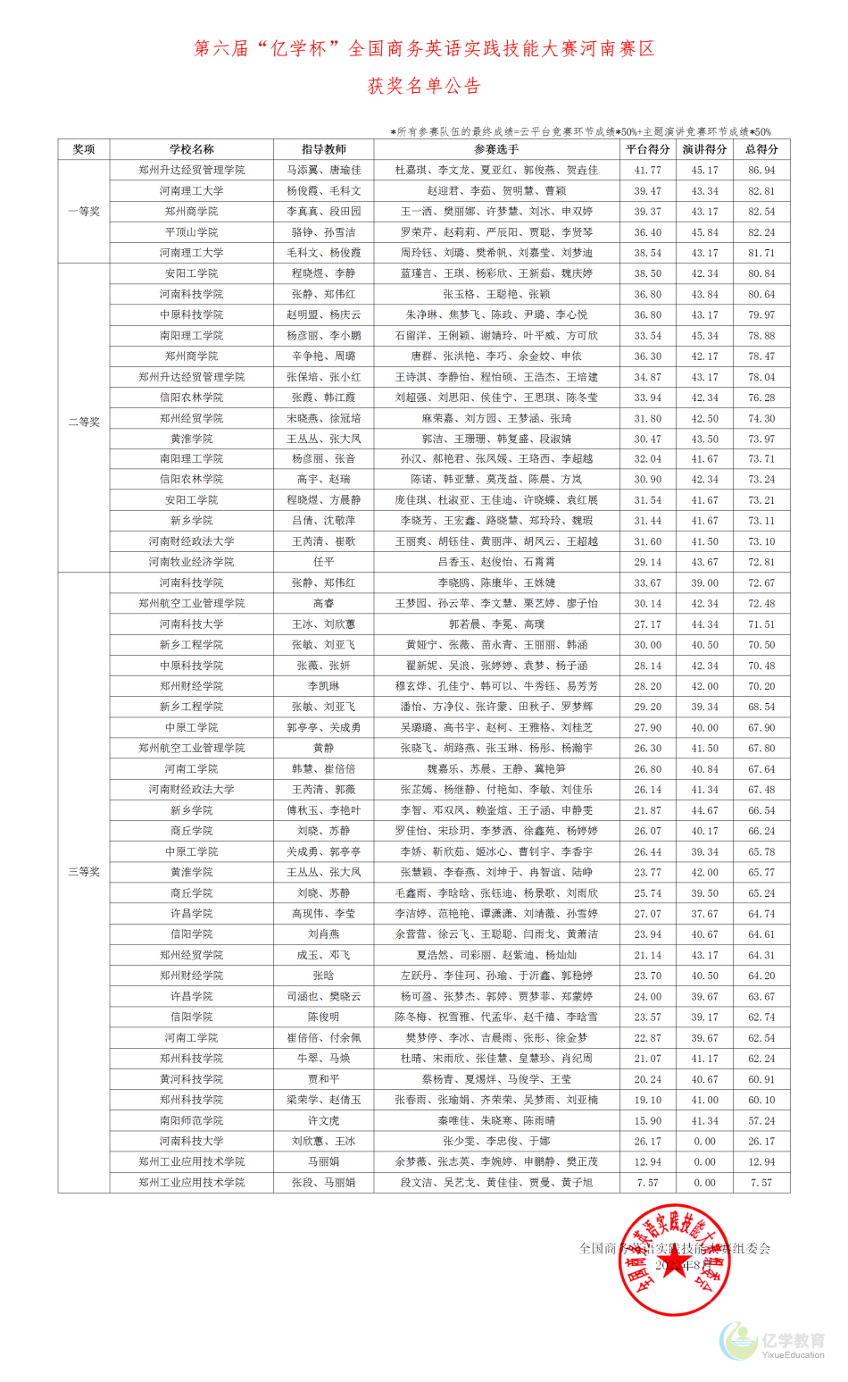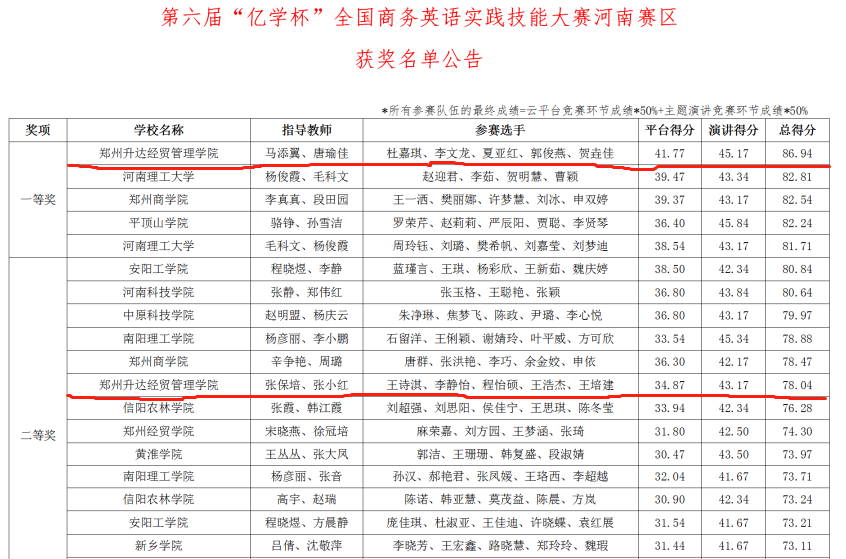 8月31日,第六届河南省“亿学杯”商务英语实践技能大赛正式落下帷幕,公司beats365唯一官方网站商务英语教研室唐瑜佳、马添翼、张保培、张小红四位教师带队参赛。经过与全省50支参赛队伍的激烈角逐,公司由2019级商务英语本科班杜嘉琪、李文龙、夏亚红、郭俊燕、贺垚佳组成的代表队以总成绩第一名的好成绩获得此次商务英语实践技能大赛一等奖。