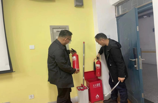 随后来到实训楼A座商务英语实训室,英美文化室,日本文化室,原版影视放映厅,对消防设施,电器设备,计算机管理,门窗安全,实验室卫生等一一检查。