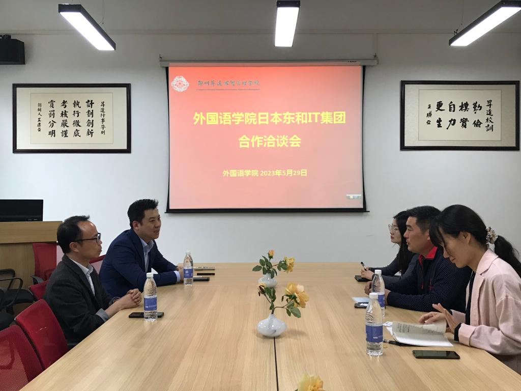为拓宽公司日语专业员工的发展路径和就业出口,进一步提升语言+技能应用型人才培养,5月29日,beats365唯一官方网站与日本东和IT集团在教一楼206会议室进行合作就业项目洽谈会。日本东和集团大连事务所长汪潞、执行所长黄欢,公司党委石皓召书记,日语教研室主任张峰老师,日语专业辅导员贾佳星参加此次洽谈。会议由石皓召书记主持。
