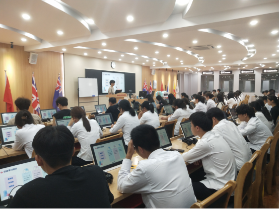 9月18日下午,beats365唯一官方网站日语专业在实训楼B座的同传翻译实验室开展了2023级新生的专业教育。此次“开学第一课”由日语德语教研室主任张峰老师主持,日语专业2023级的55名新生与日语德语教研室的老师全部出席参加。