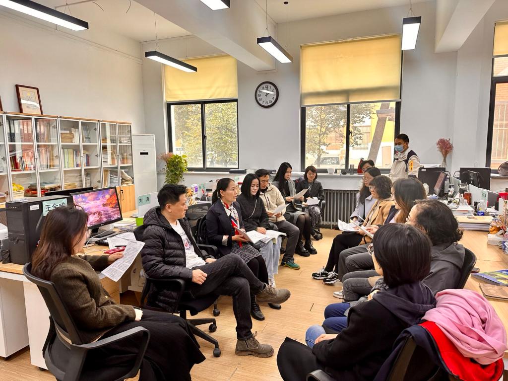 2023年11月9日下午,翻译教研室全体成员在教一楼108召开了2023-2024学年度第一学期期中教研会议。会议由翻译教研室主任张艳波副教授主持。