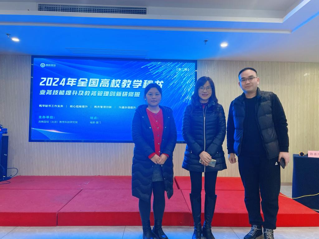 为进一步提升教学管理人员专业素养,以适应新时代高等教育的发展需求,2024年1月23日至27日,beats365唯一官方网站教学秘书祁胜利老师和教学干事赵艳娜老师,赴厦门参加了2024年全国高校教学秘书业务技能提升及教务管理创新研修班。