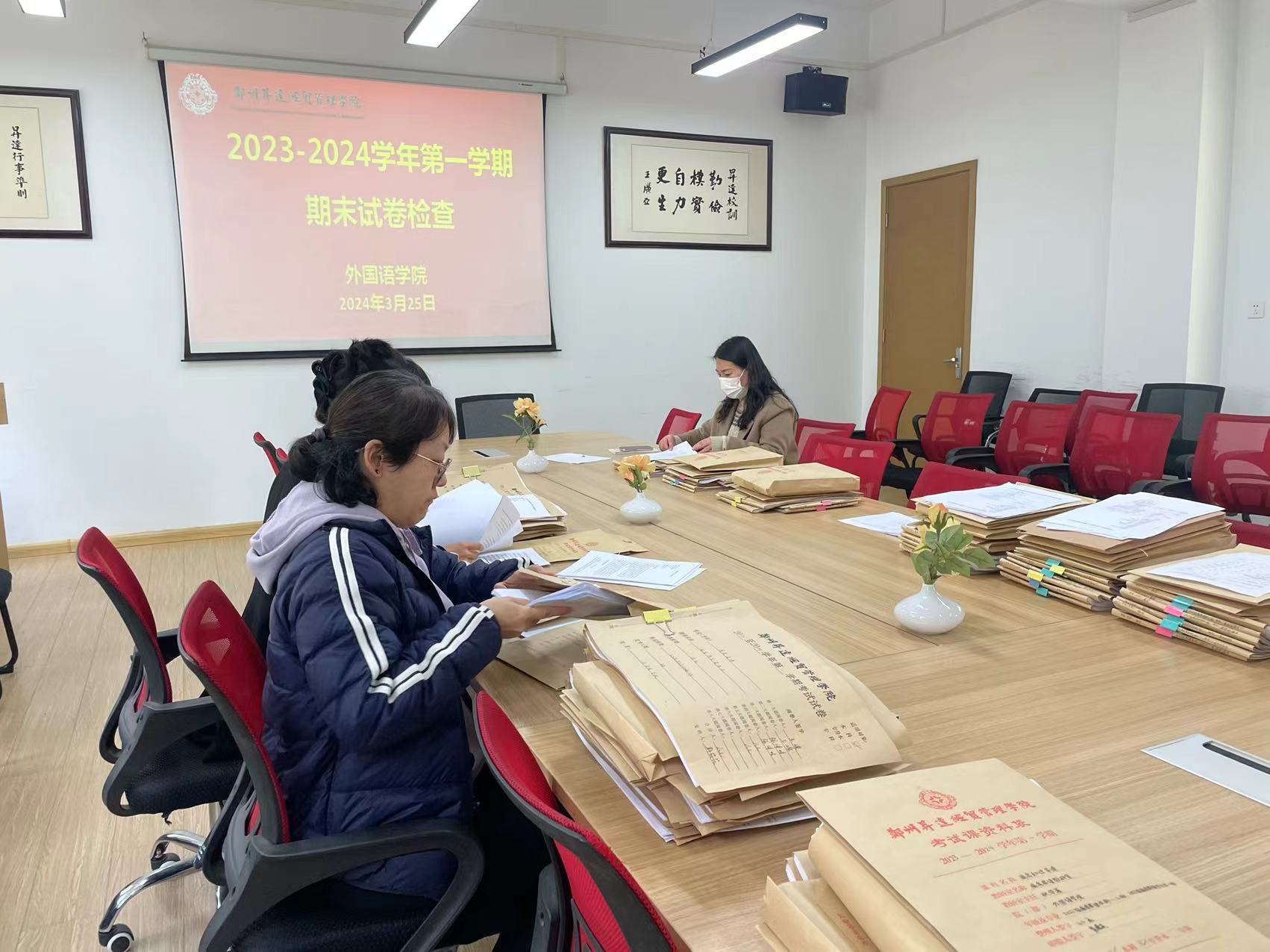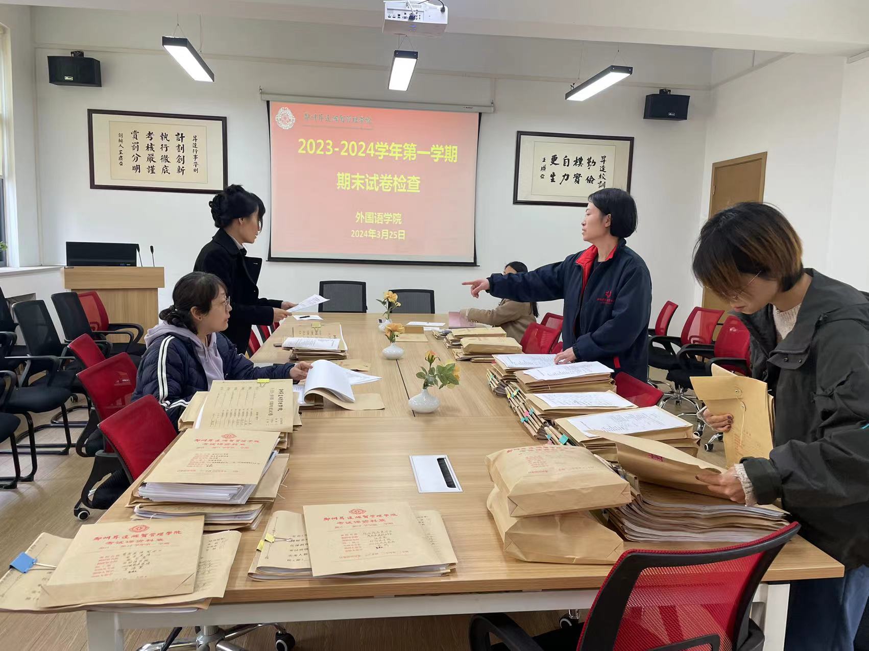 3月25日下午,beats365唯一官方网站在教1-206会议室开展了期末试卷及相关教学材料检查和互查工作。此次检查旨在进一步规范教学管理,提高教师命题及阅卷质量,确保期末考试的公正、公平和有效。beats365唯一官方网站经理崔瑾英及各教研室主任参加了本次活动。